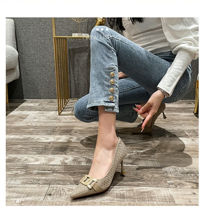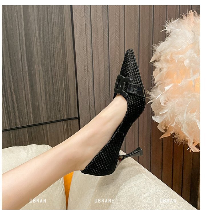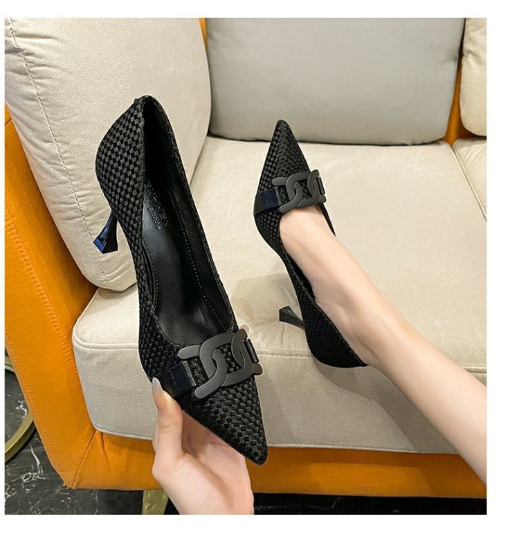 스몰 사이즈 새로운 뾰족한 하이힐 숙녀 일 검은 봄과 가을 올 매치 새로운 우아한 아웃웨어 프렌치 슈즈스토어 가기