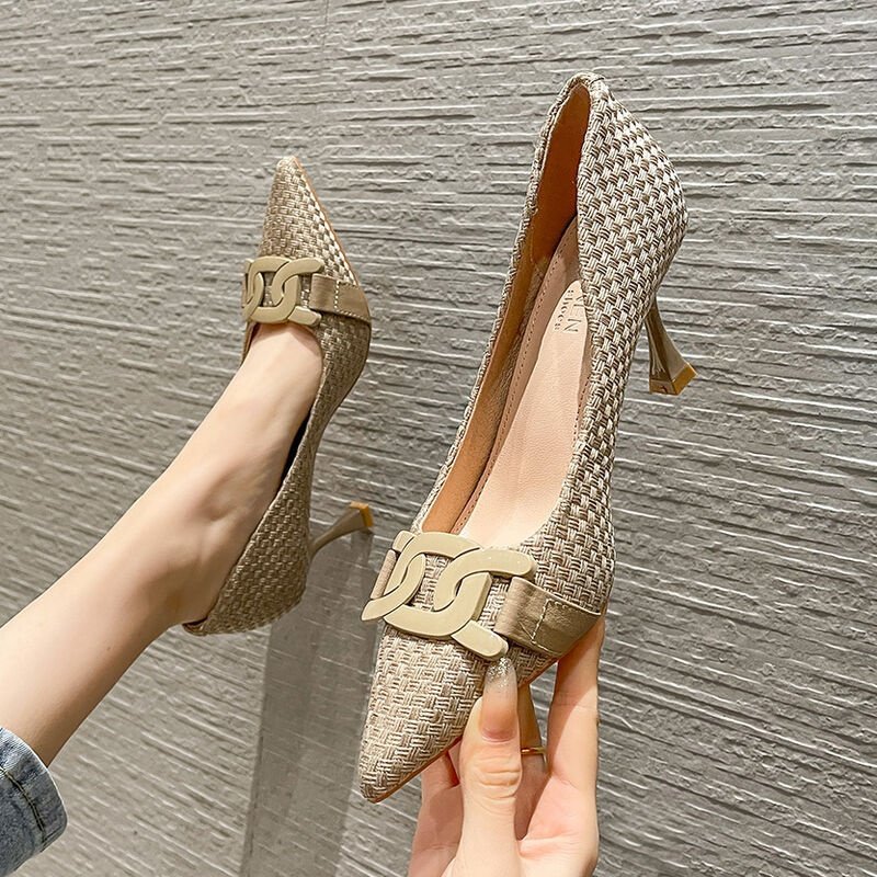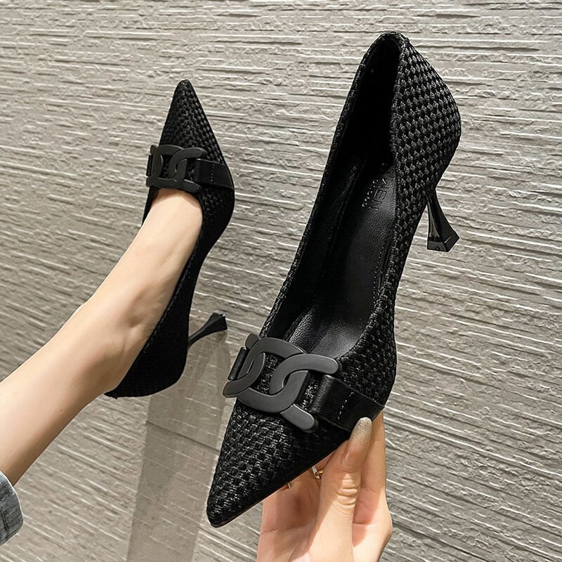 스몰 사이즈 새로운 뾰족한 하이힐 숙녀 일 검은 봄과 가을 올 매치 새로운 우아한 아웃웨어 프렌치 슈즈