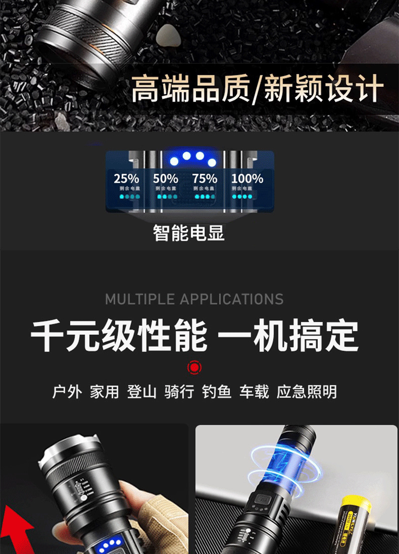 • 89000K 매우 밝음 [플래시 충전 모델] 666일 대기 - 슈퍼 레이저 캐논 [매우 밝고 장거리] 30년 동안 지속됨