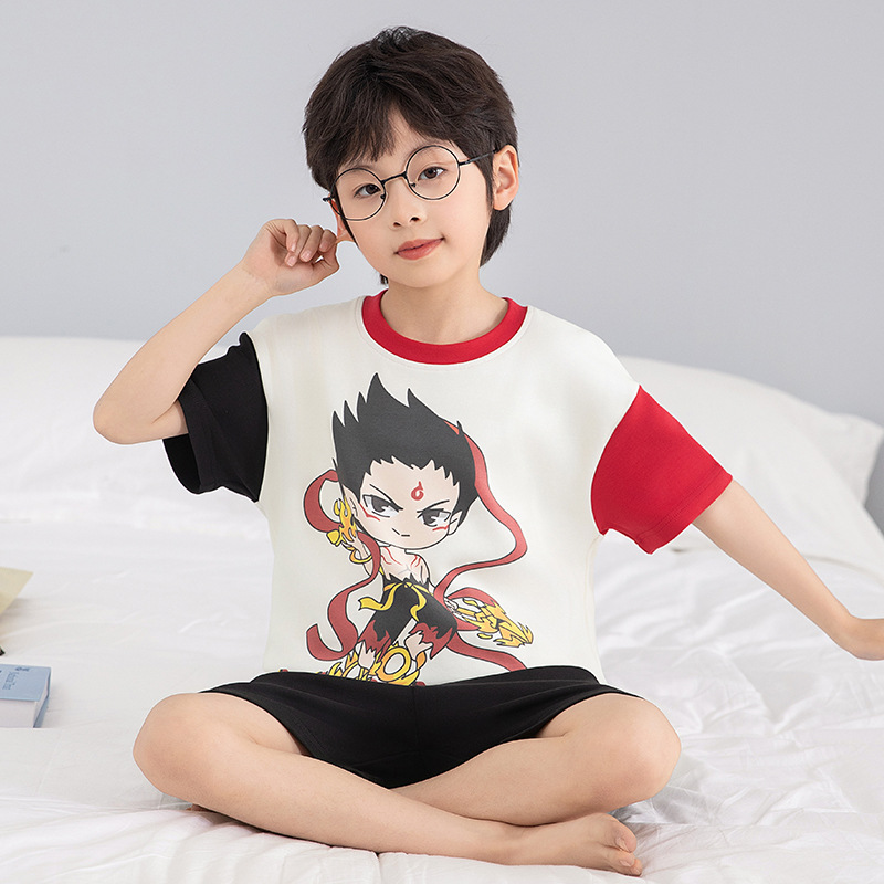 만화 애니메이션 순면 어린이 잠옷 반팔 반바지 얇은 스타일은 캐주얼 소년 에어컨 룸 홈 의류 외부에 착용 가능
