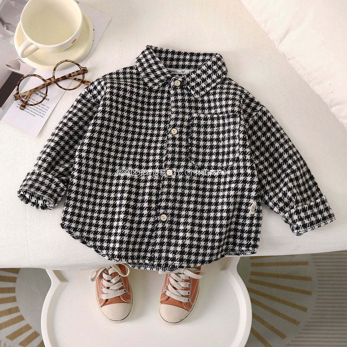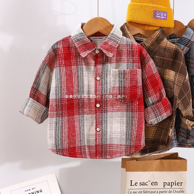 최고의 캐주얼 패션 아기 어린이 시즌 트렌드 어린이 체크 무늬 아동복 코트 남성과 여성의 중소 셔츠 봄과 가을 도매스토어 가기
