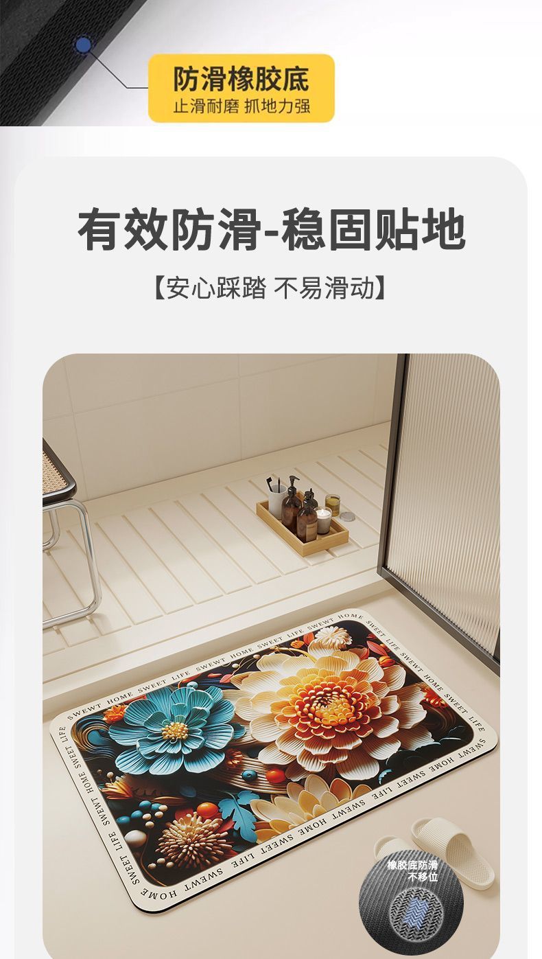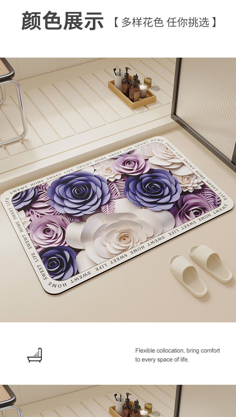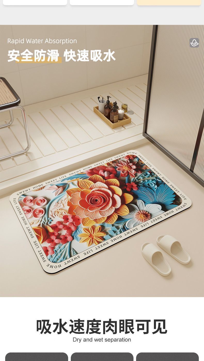 슈퍼 두꺼운 3D 비주얼 디 아톰 진흙 가구 흡수성 바닥 매트 화장실 문 욕실 고무 미끄럼 방지 바닥 매트