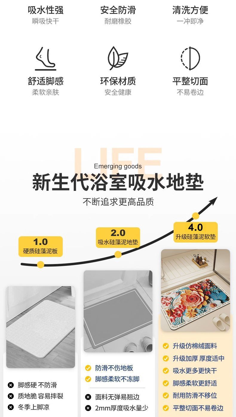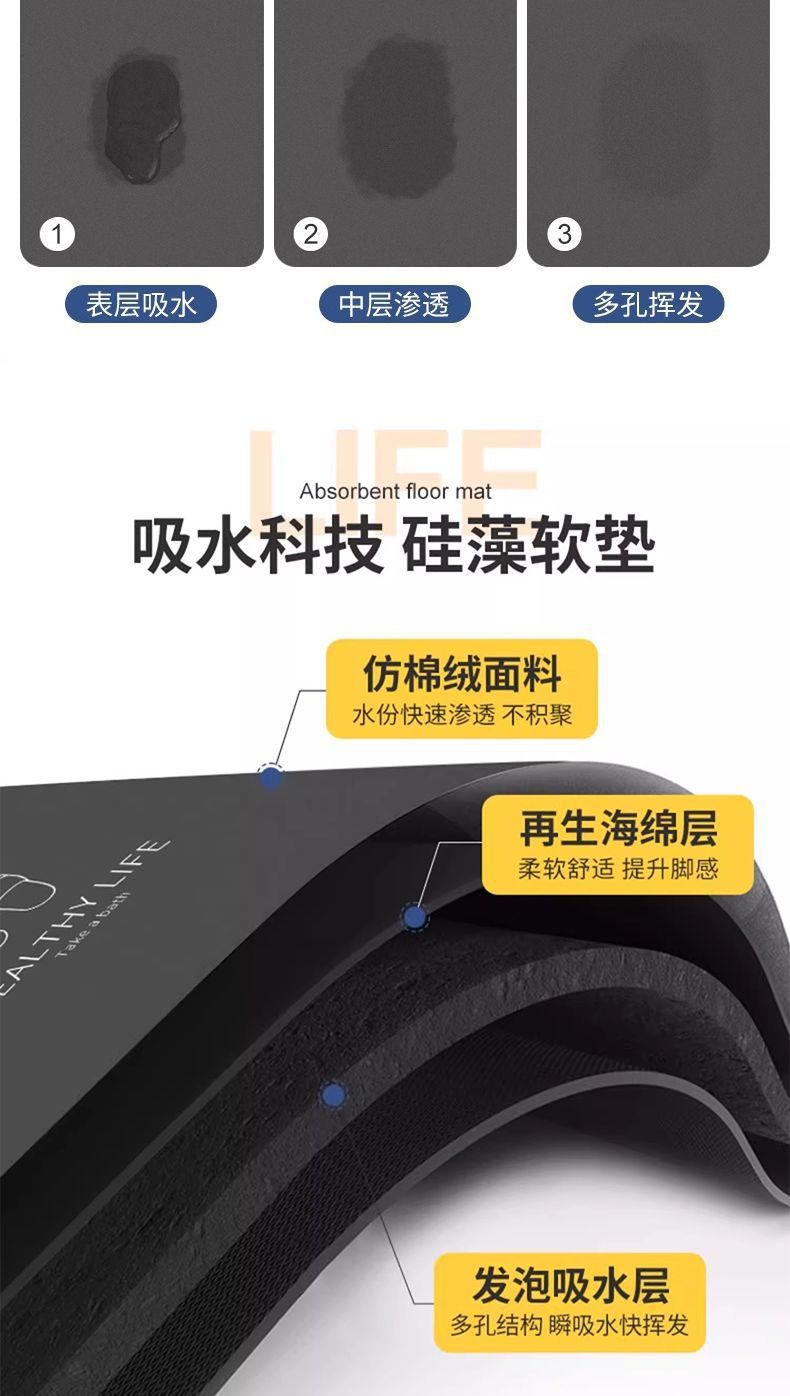 슈퍼 두꺼운 3D 비주얼 디 아톰 진흙 가구 흡수성 바닥 매트 화장실 문 욕실 고무 미끄럼 방지 바닥 매트스토어 가기
