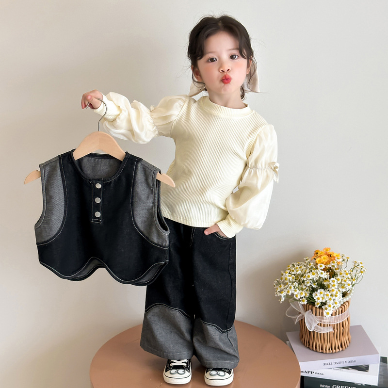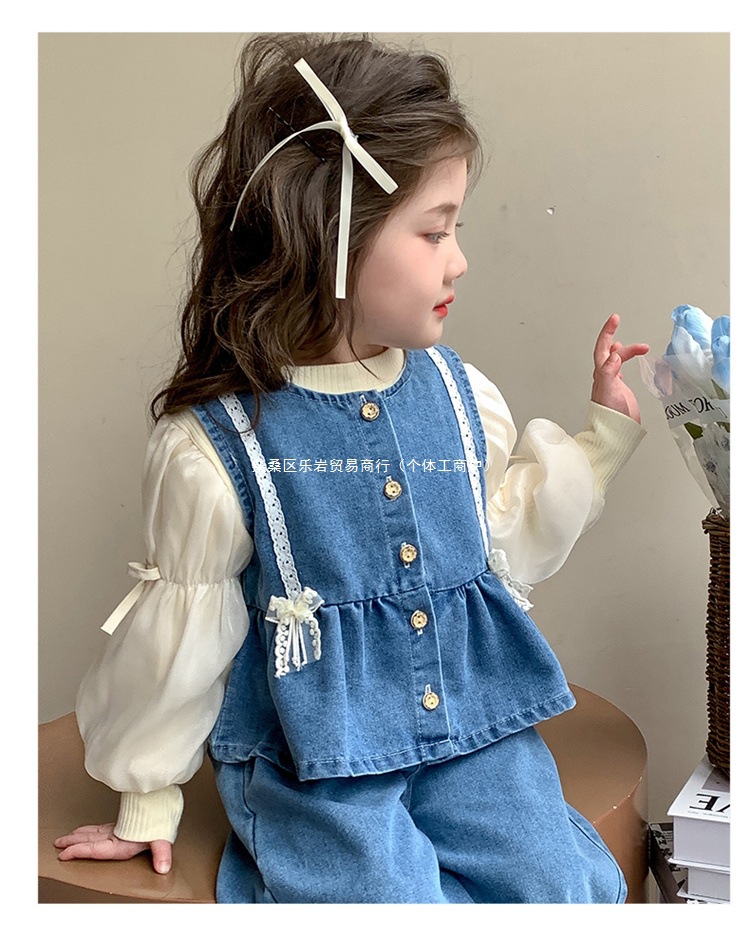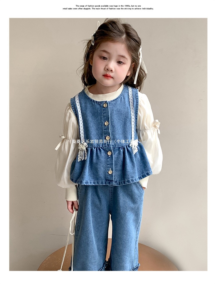 소녀 데님 세트 봄 어린이 봄과 가을 2025 새로운 소녀 유행 조끼 데님 3 도매