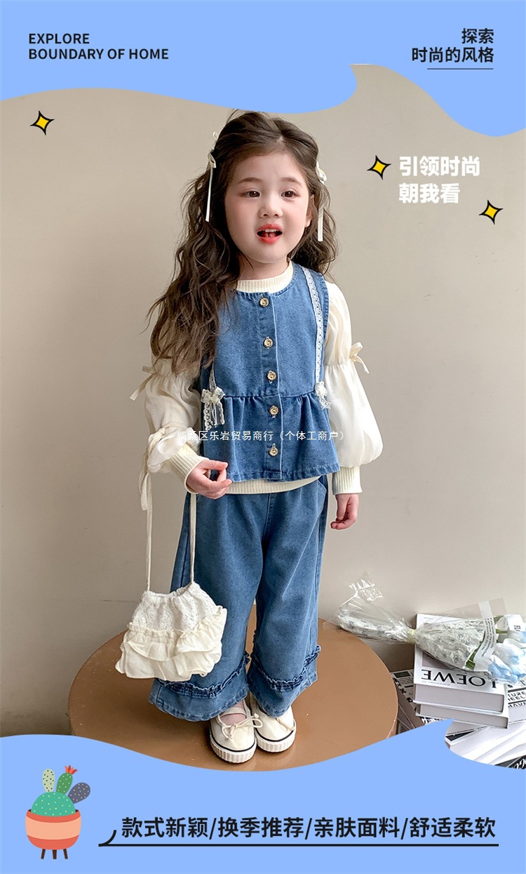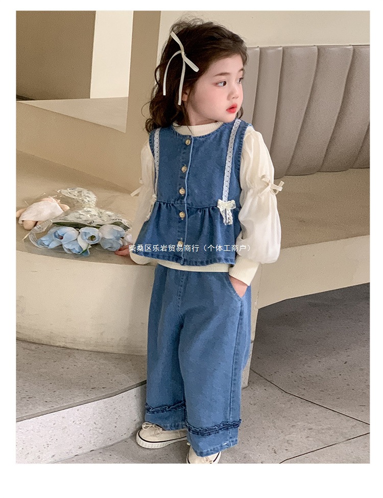 소녀 데님 세트 봄 어린이 봄과 가을 2025 새로운 소녀 유행 조끼 데님 3 도매스토어 가기