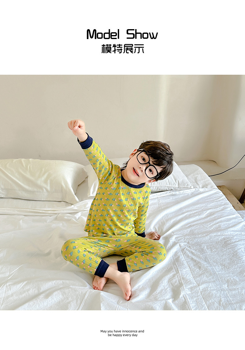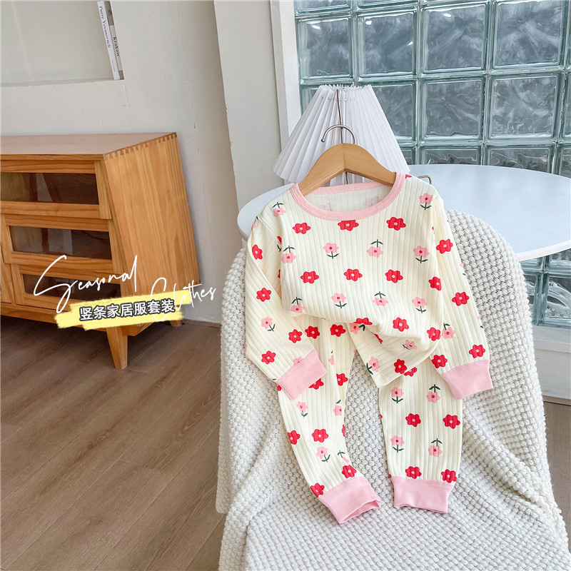 어린이 홈 의류 세트 코튼 걸스 코튼 파자마 투피스 세트 남성 아기 속옷 아기의 가을 옷과 바지