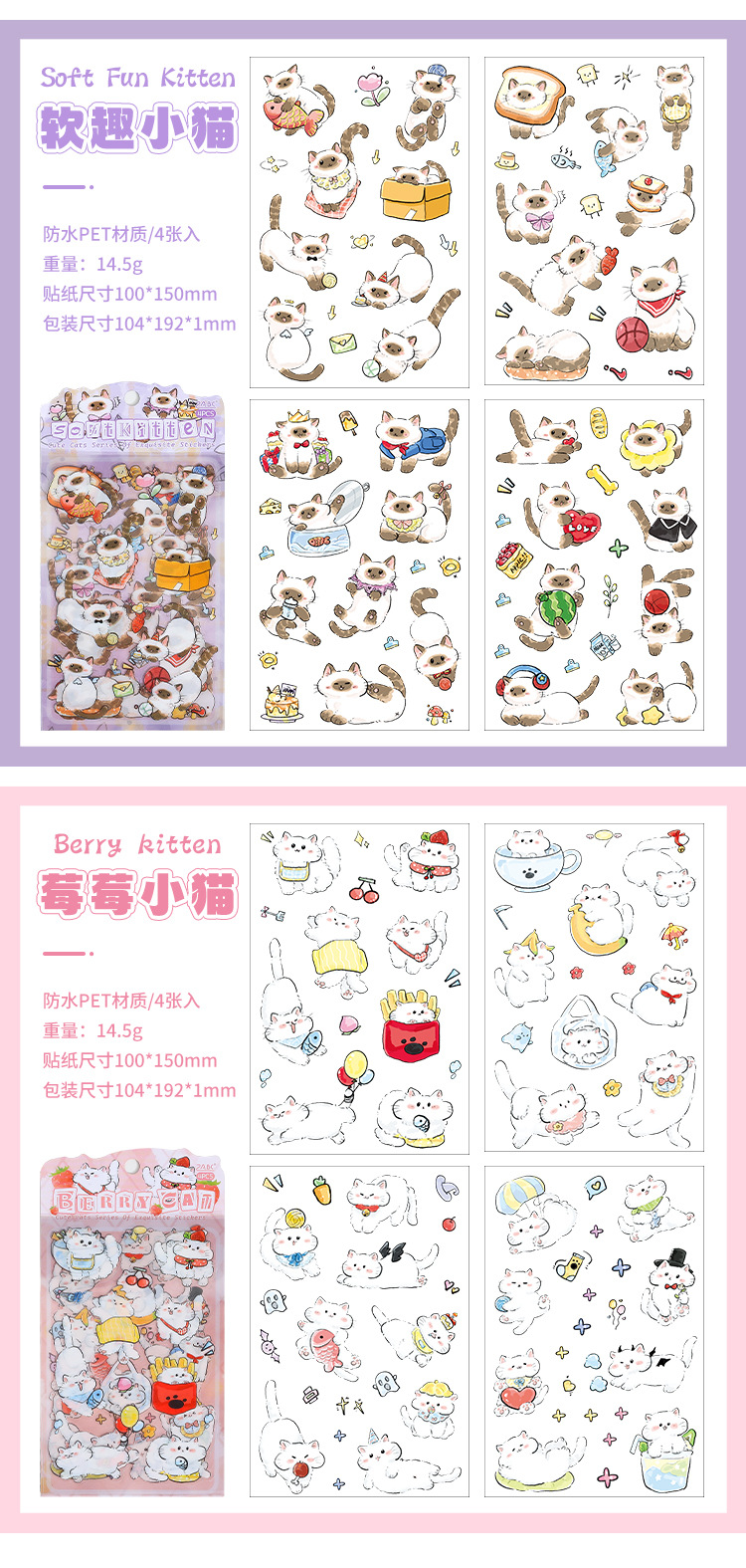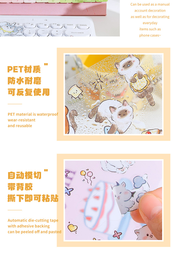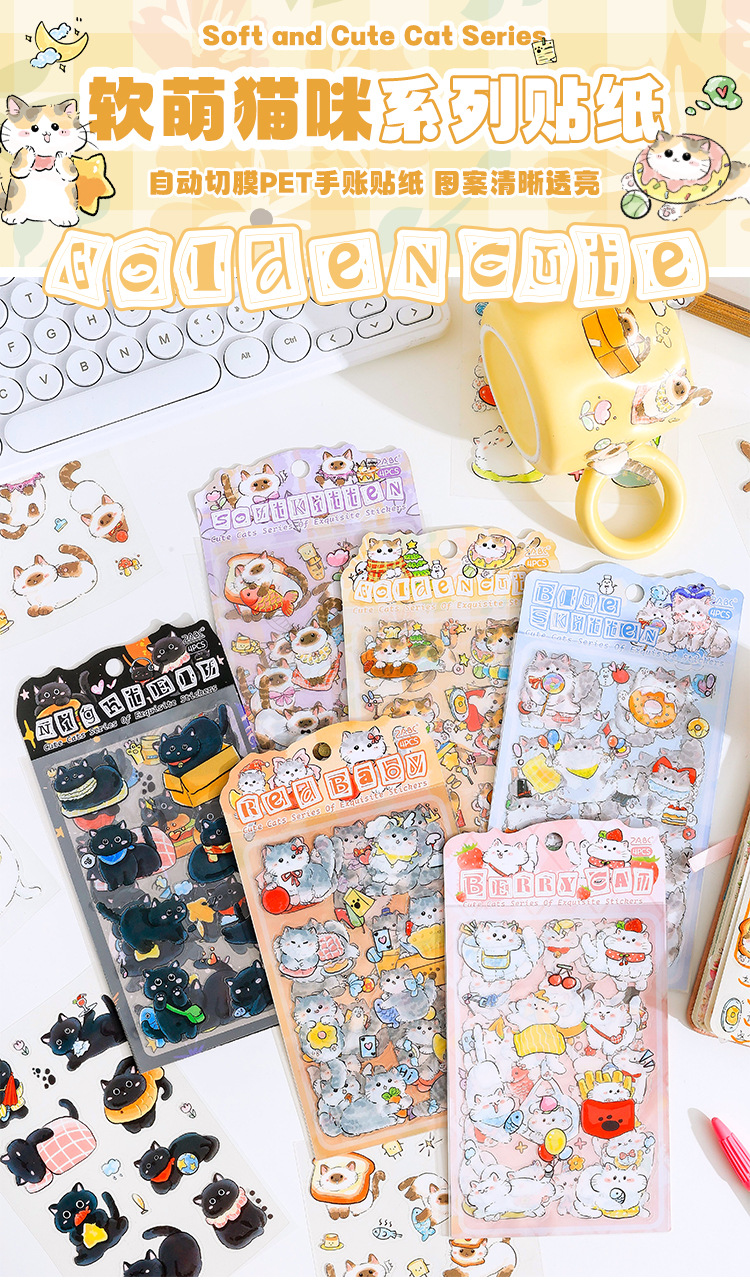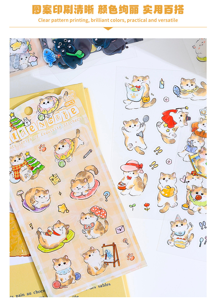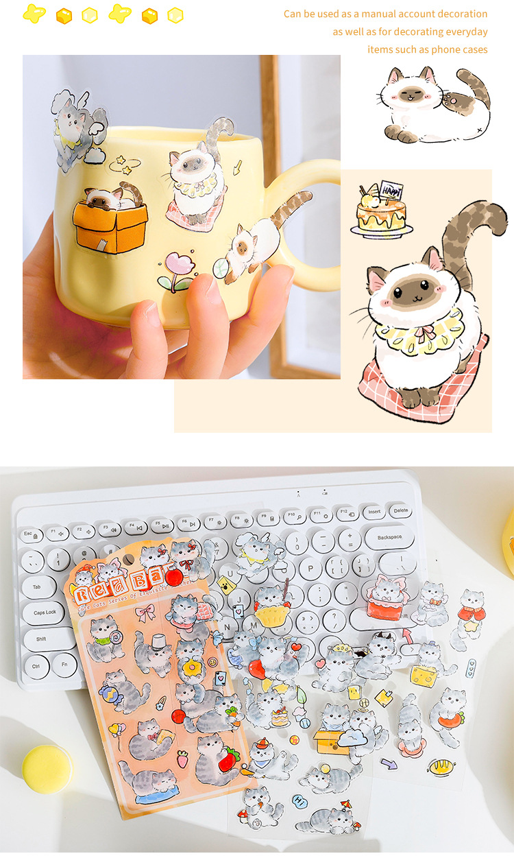 Yuezhen 부드러운 귀여운 고양이 귀여운 만화 손 계정 스티커 국경 어린이 스티커 애완 동물 컷 필름 손 계정 스티커스토어 가기
