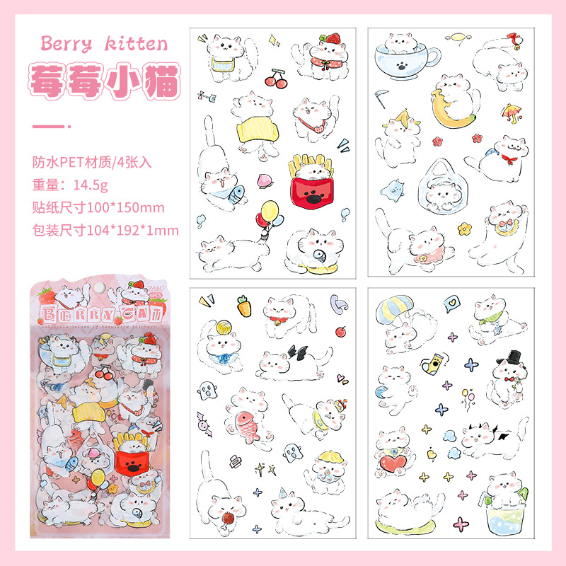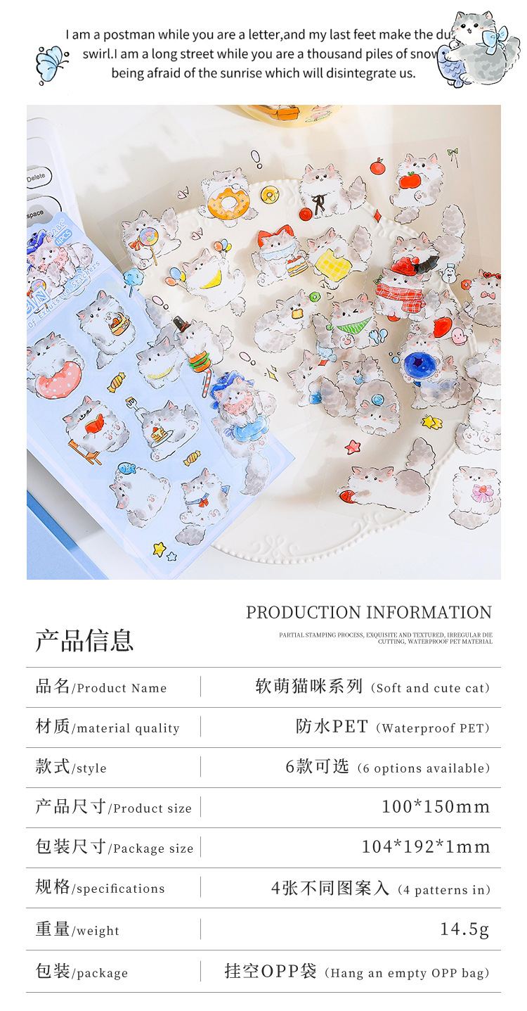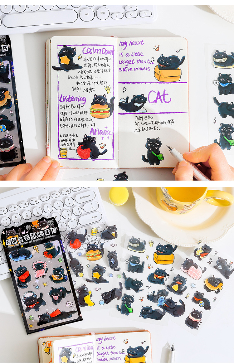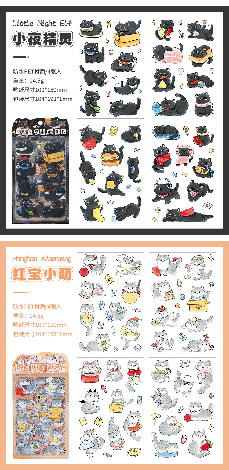 Yuezhen 부드러운 귀여운 고양이 귀여운 만화 손 계정 스티커 국경 어린이 스티커 애완 동물 컷 필름 손 계정 스티커스토어 가기
