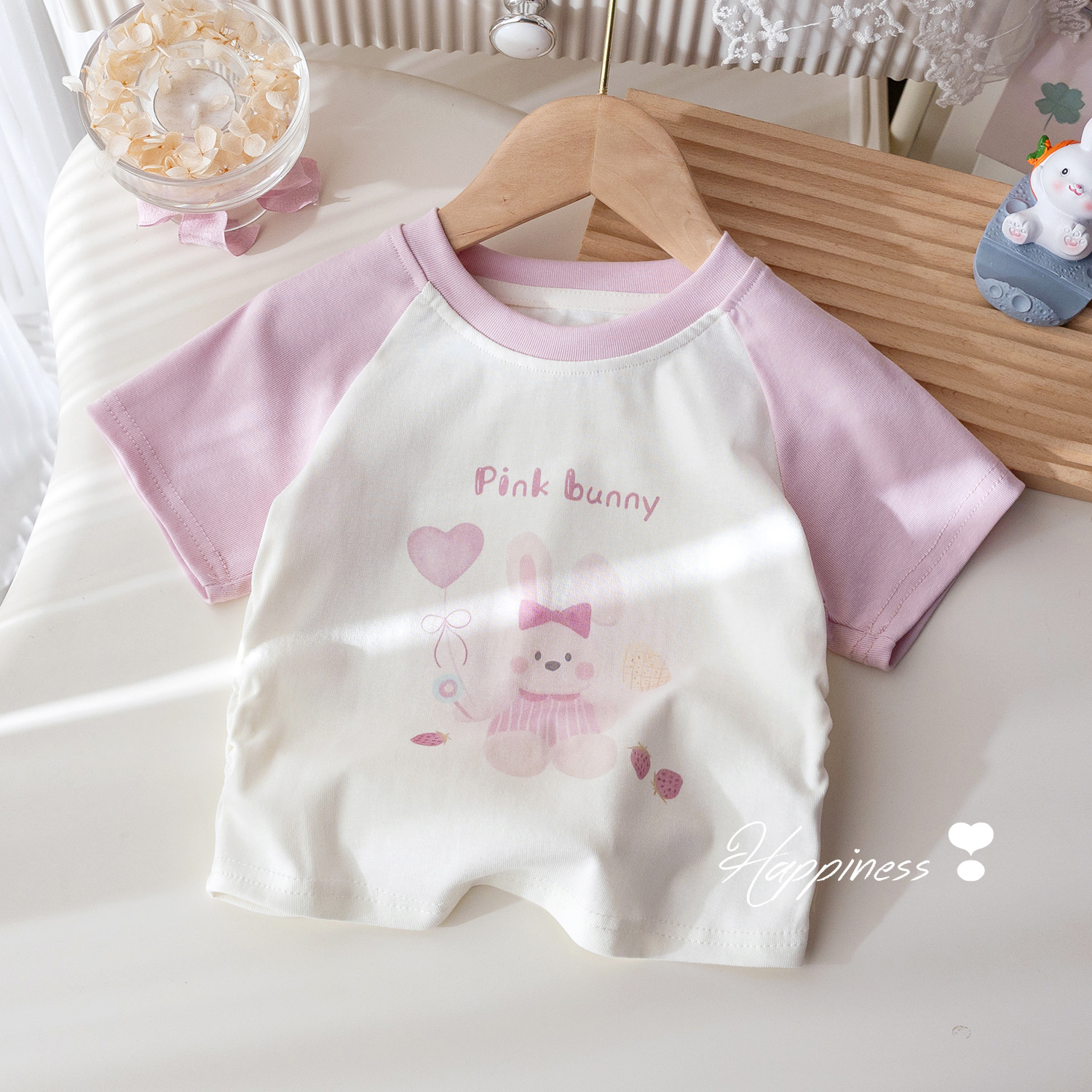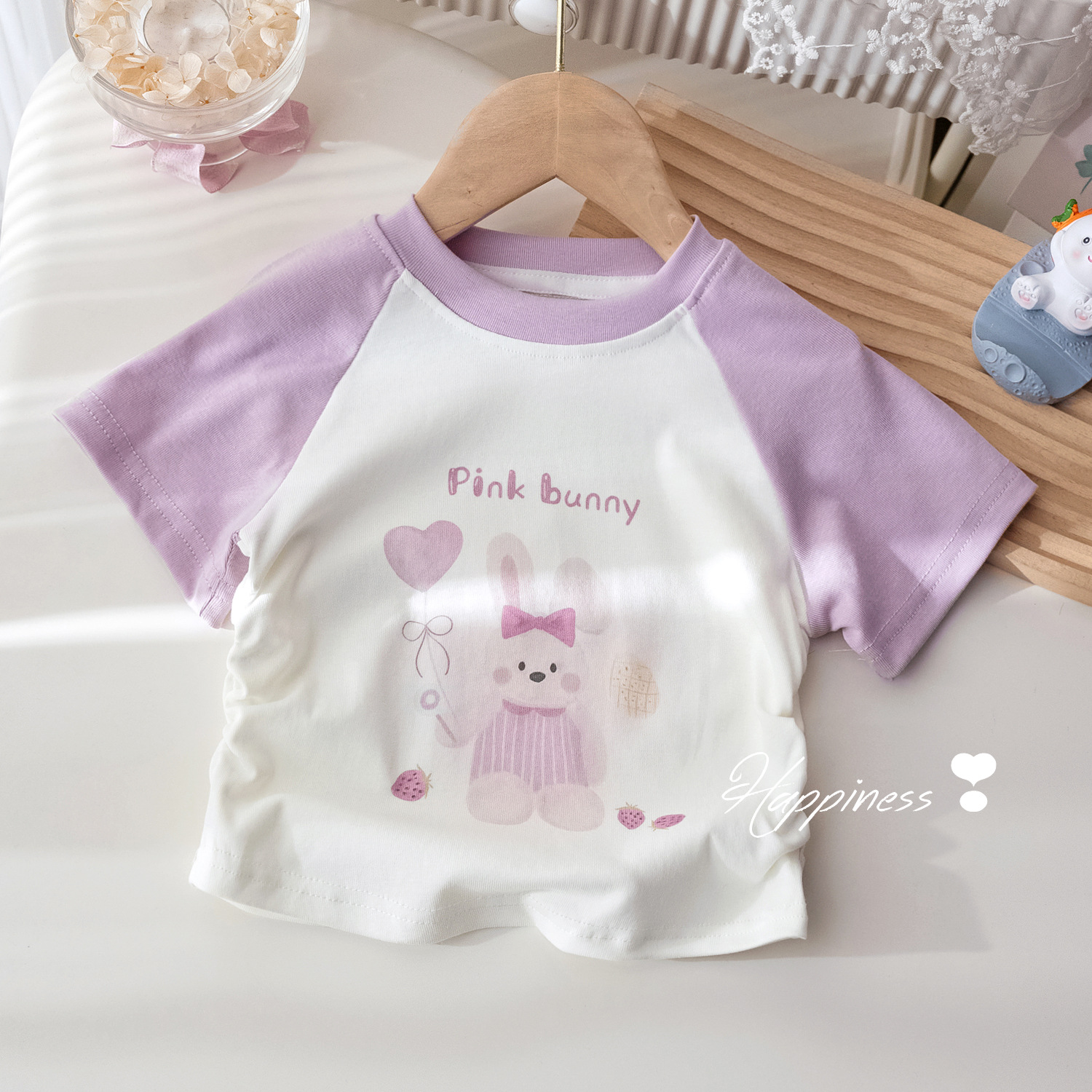 소녀 2025 여름 반팔 티셔츠 귀여운 만화 인쇄 컬러 대비 반팔 탑 아기 소녀 여름 옷스토어 가기