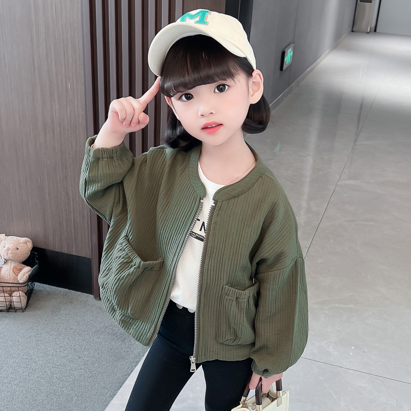 여성 3 어린이 박쥐 소매 코트 2025 가을 새로운 어린이 6 어린이 온라인 인기있는 외국 스타일 캐주얼 아기 소녀 지퍼 스틱 도매