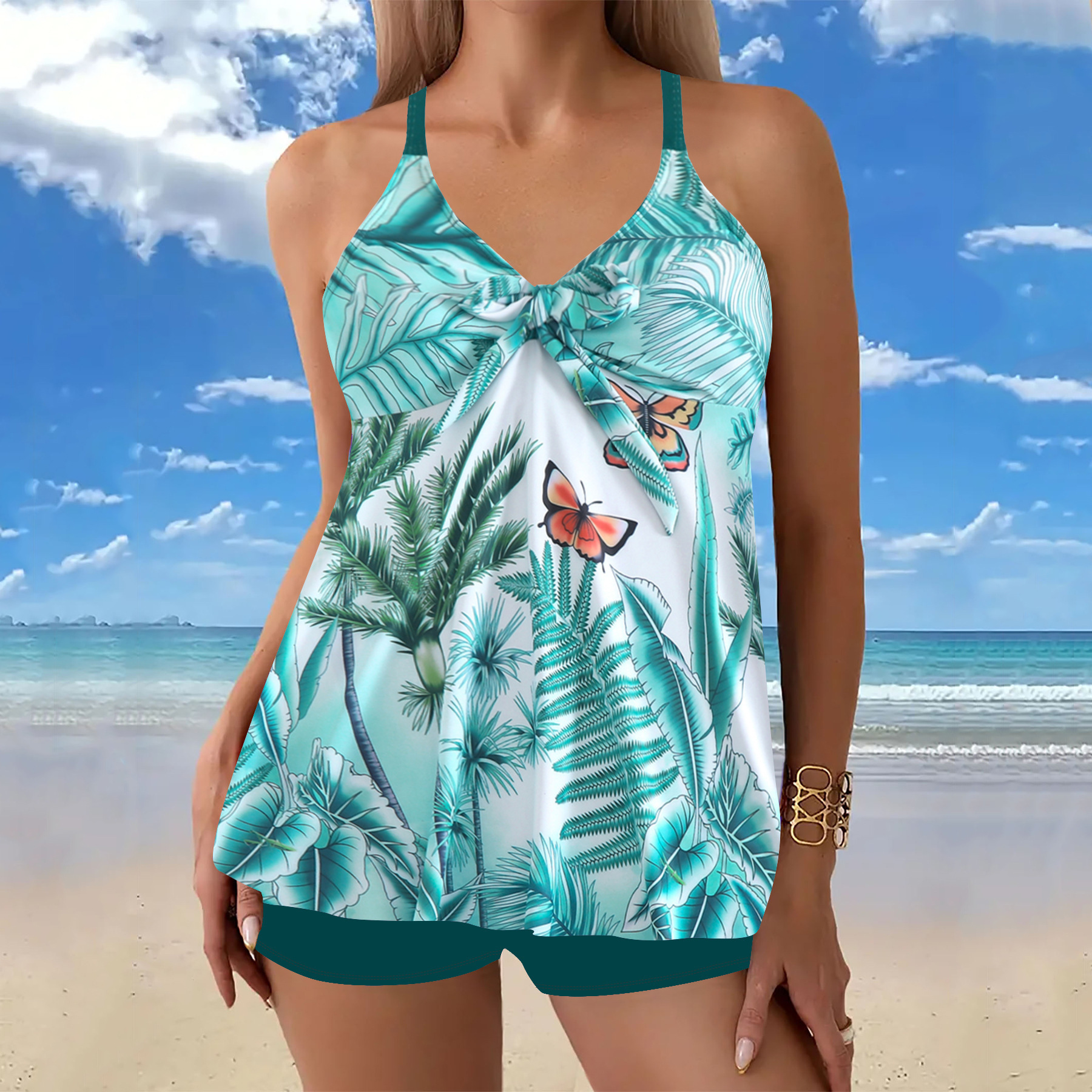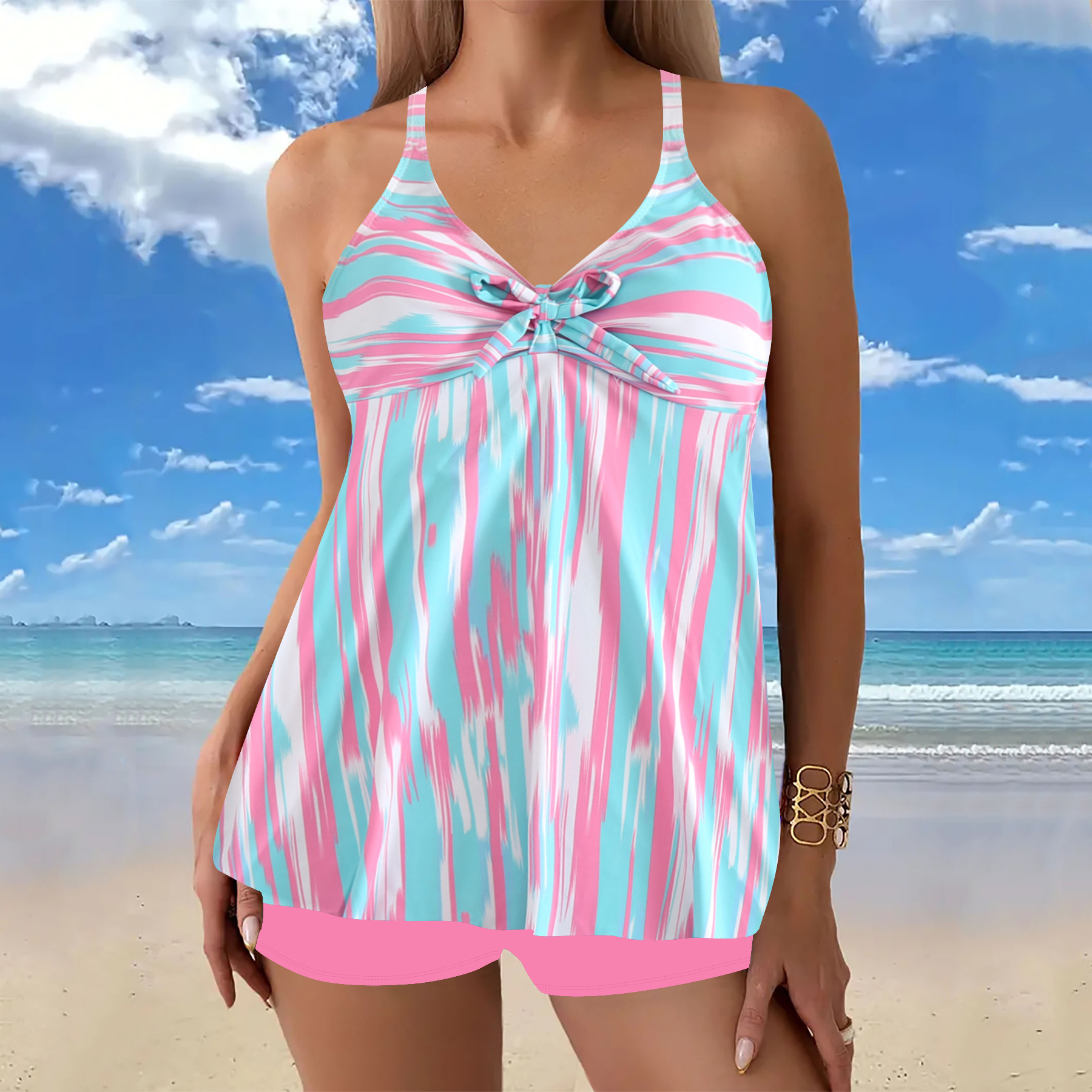 2025 아마존 새로운 유럽 및 미국 분할 수영복 여성 대형 스커트 비키니 복서 인쇄 수영복스토어 가기