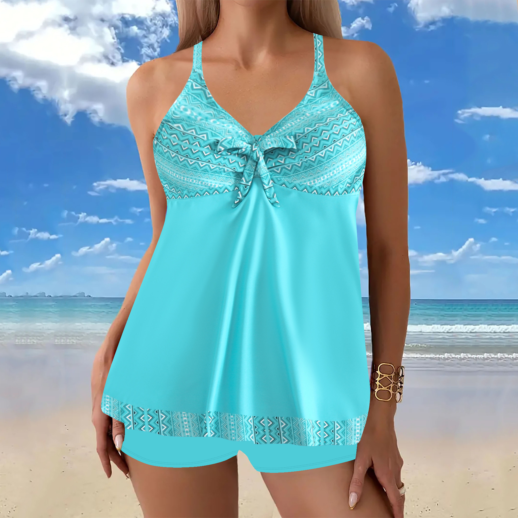 2025 아마존 새로운 유럽 및 미국 분할 수영복 여성 대형 스커트 비키니 복서 인쇄 수영복