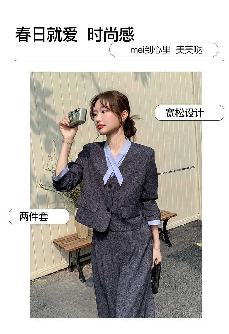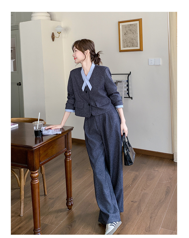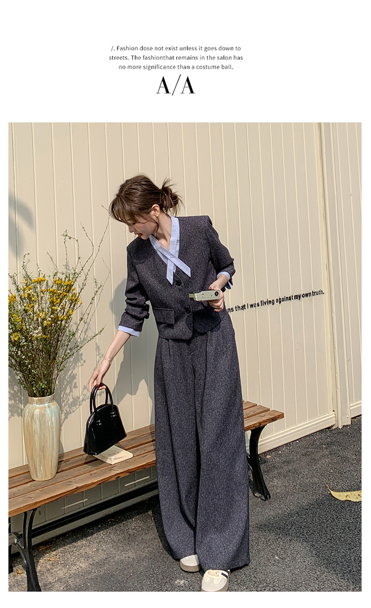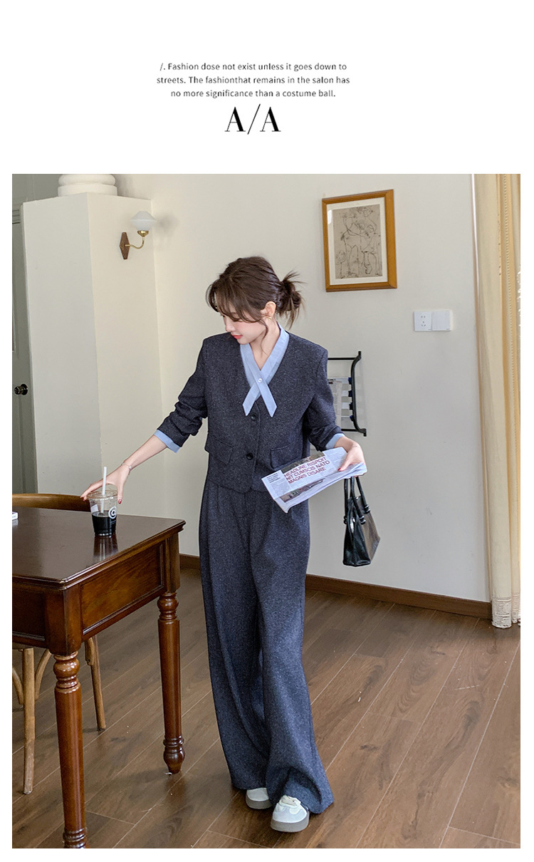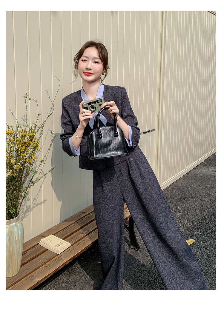 [Mengmei] 25 봄 Meek 하이 엔드 패션 콘트라스트 컬러 작은 세트 높은 허리 넓은 다리 바지 세트 여성 프로페셔스