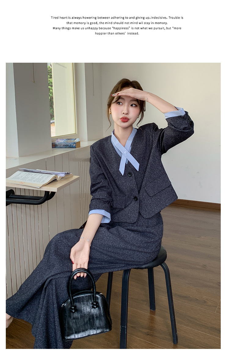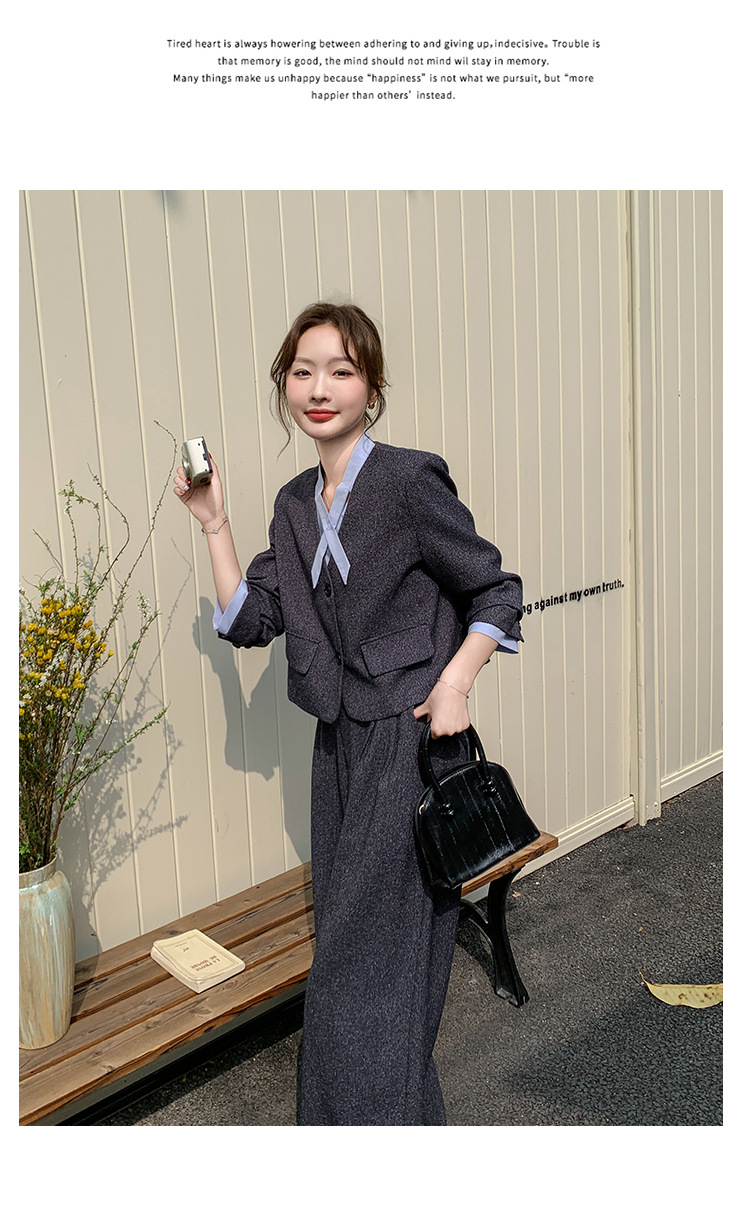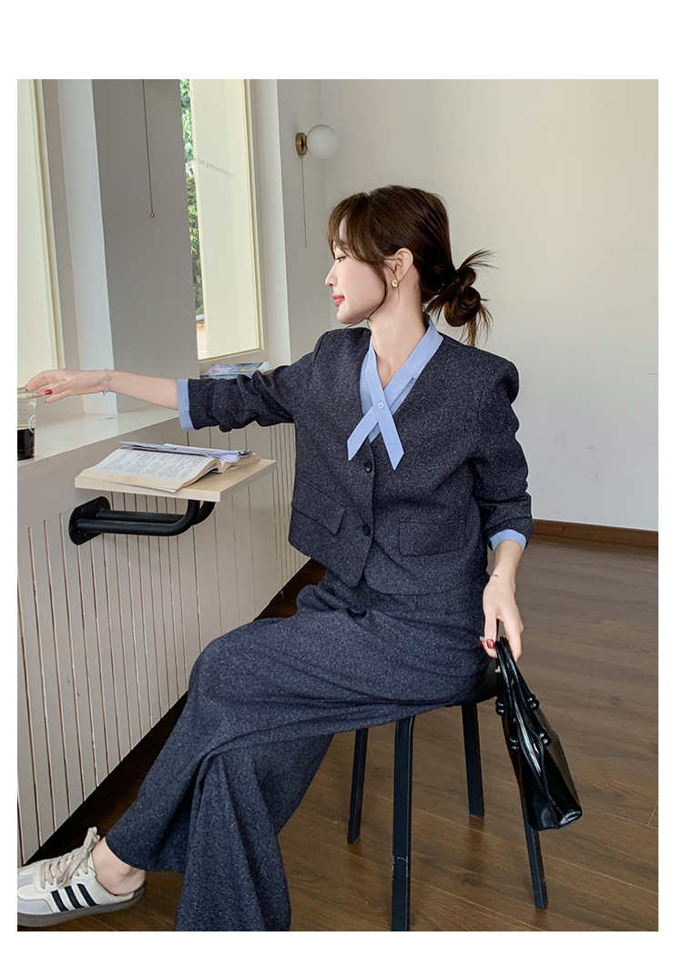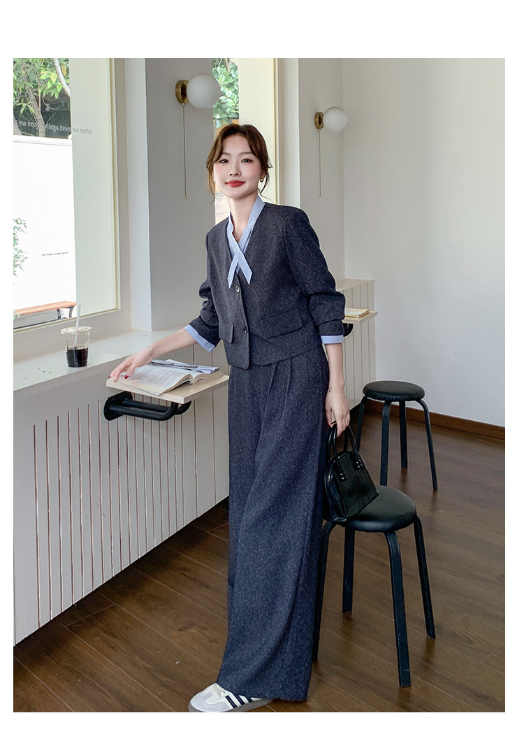 [Mengmei] 25 봄 Meek 하이 엔드 패션 콘트라스트 컬러 작은 세트 높은 허리 넓은 다리 바지 세트 여성 프로페셔스