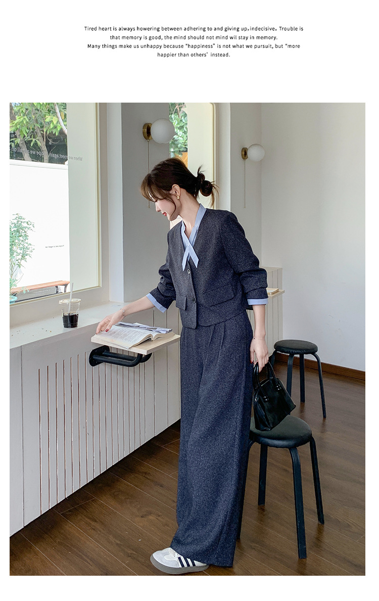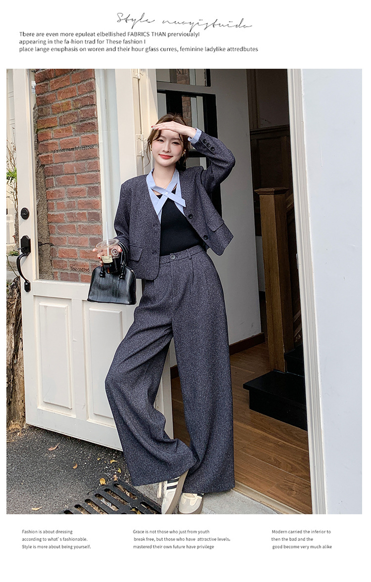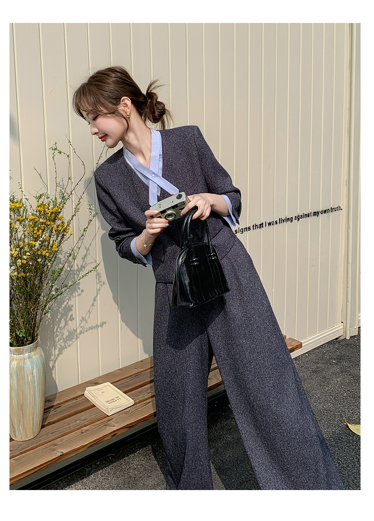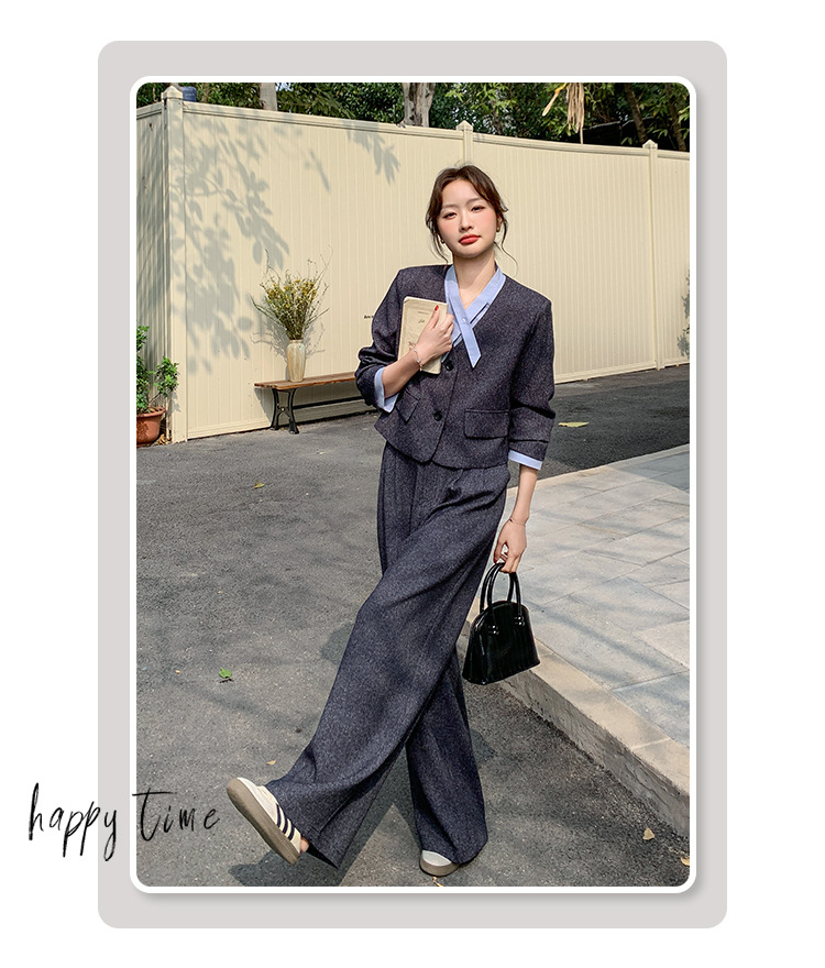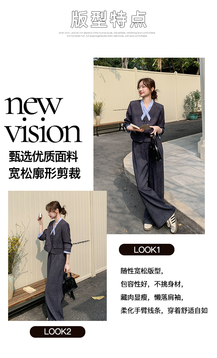 [Mengmei] 25 봄 Meek 하이 엔드 패션 콘트라스트 컬러 작은 세트 높은 허리 넓은 다리 바지 세트 여성 프로페셔스스토어 가기