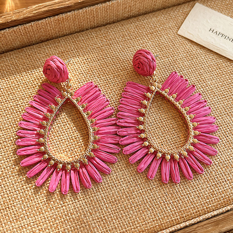 • 짚과 등나무로 짠 삼각형 펜던트 이어링
