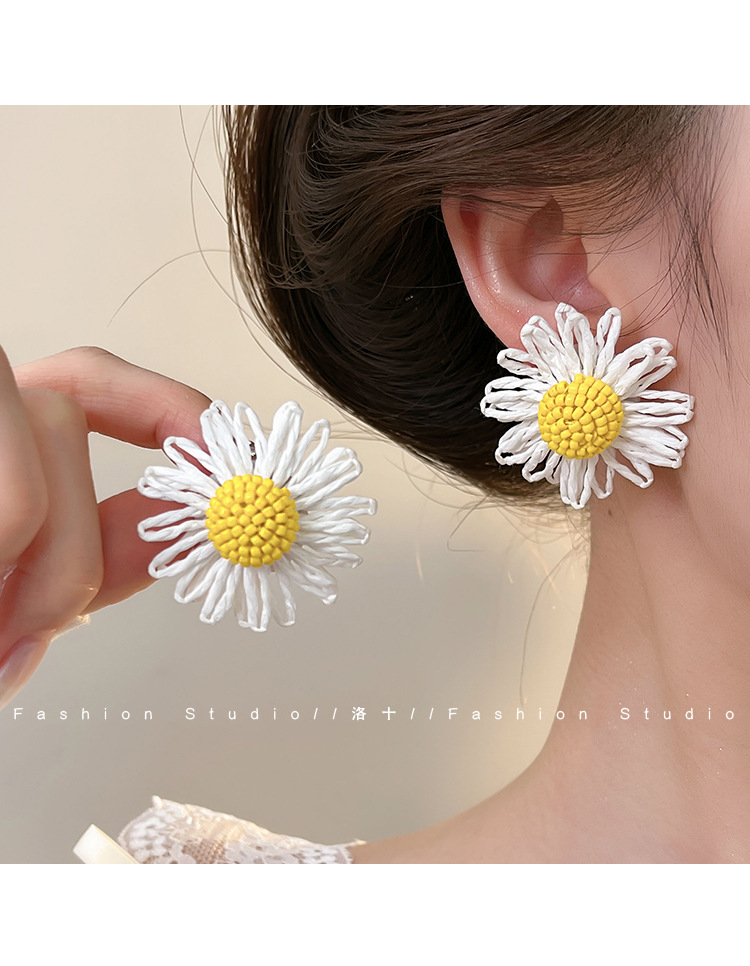 • 오프화이트 밀짚으로 만든 과장된 대형 꽃 이어훅