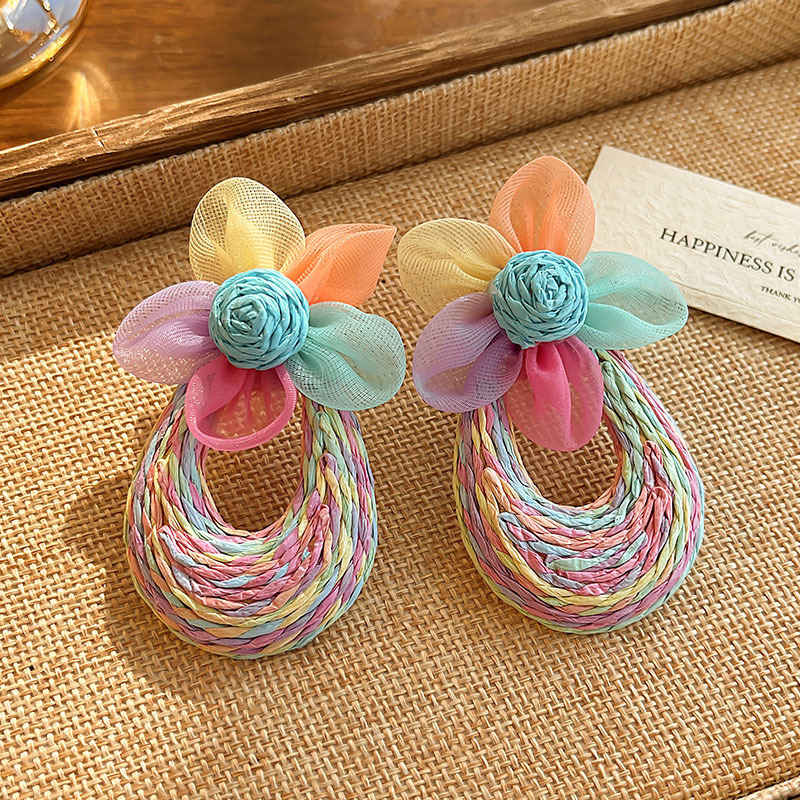 다채로운 꼰 꽃 귀걸이 여성용 고급 센스 도파민 귀걸이 가벼운 럭셔리 틈새 해변 휴일 귀 하락 귀걸이