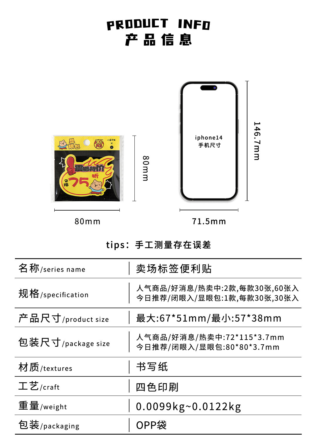 인페렐. 나 특별한 모양의 포스트잇 노트 스토어 라벨 시리즈 창조적 인 텍스트 일러스트 핸드북 하단 메시지 노트