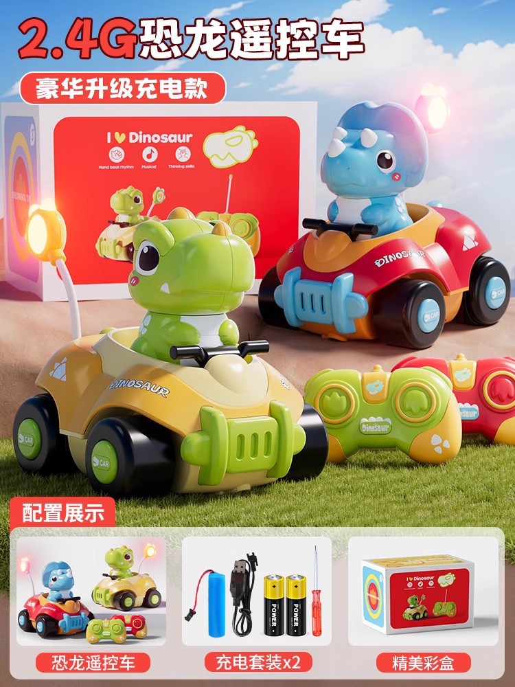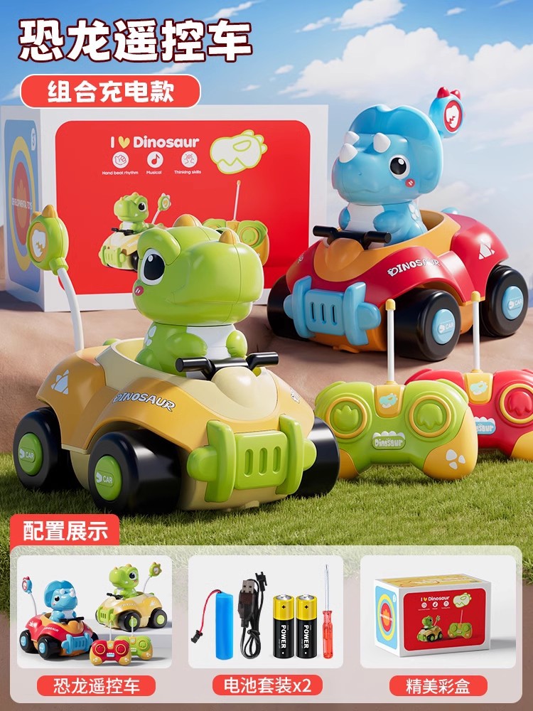 공룡 원격 제어 자동차 전기 어린이 장난감 자동차 소년 더블 배틀 아기 생일 선물 3-6 세스토어 가기