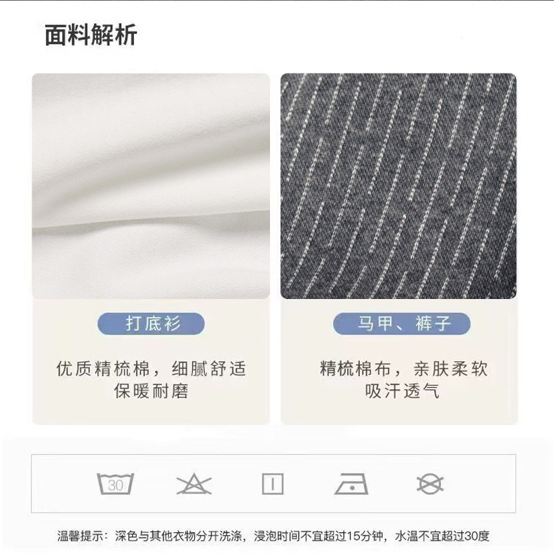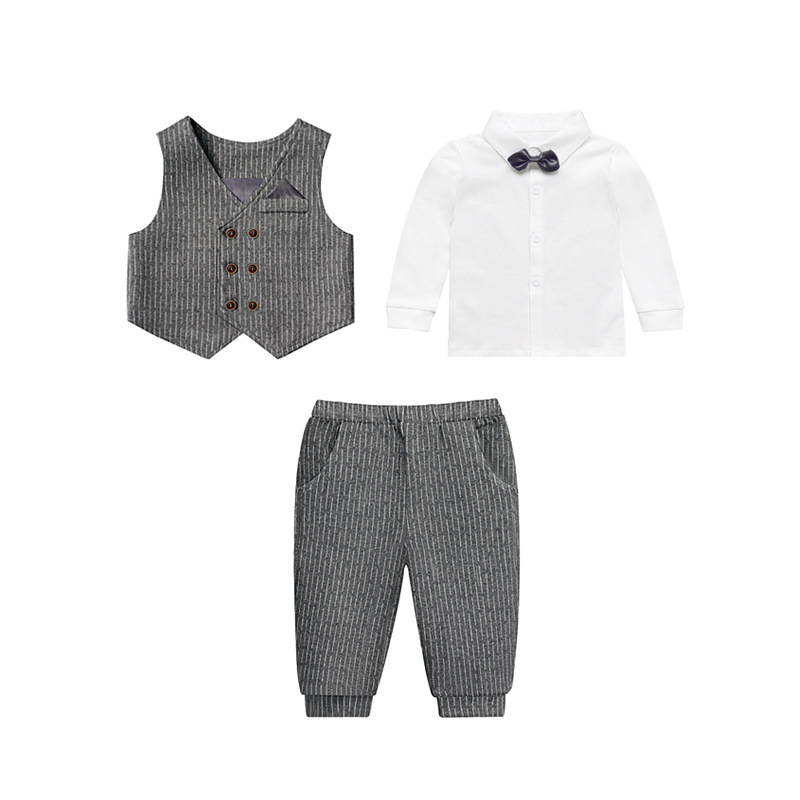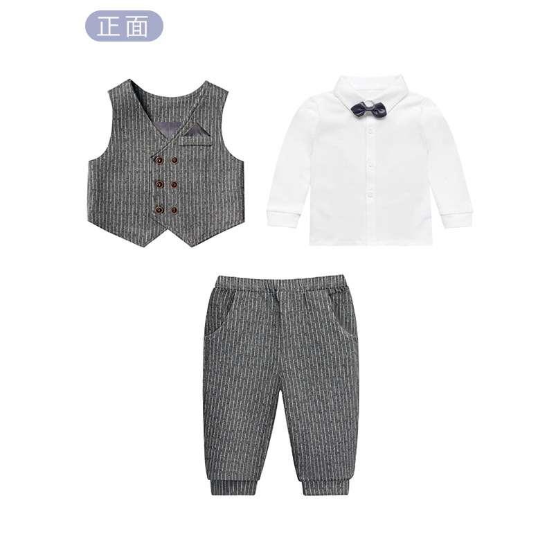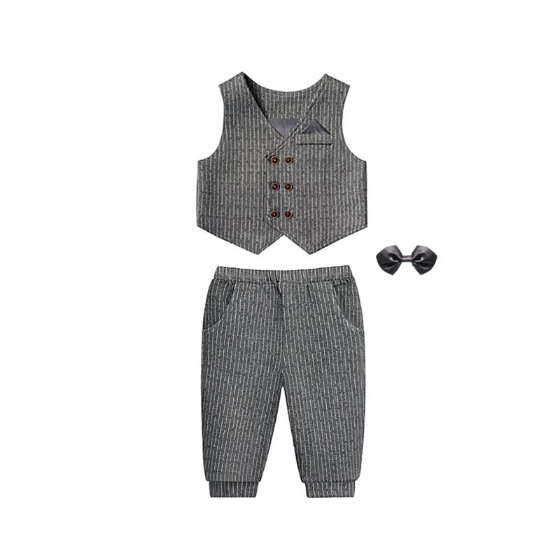 • 회색 줄무늬: 조끼 + 바지 + 흰색 니트 긴팔 셔츠 + 천연 나비 넥타이