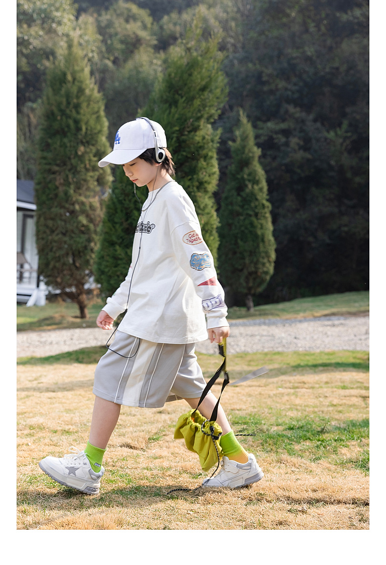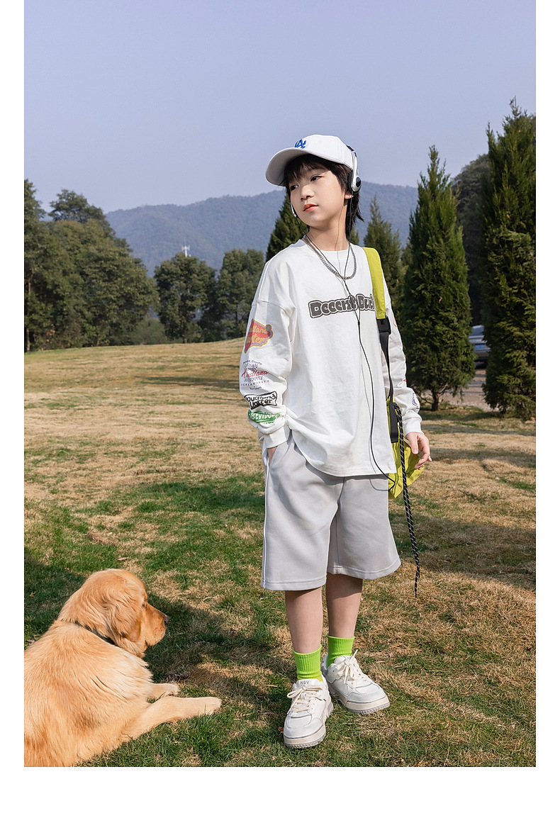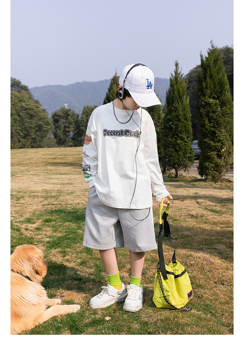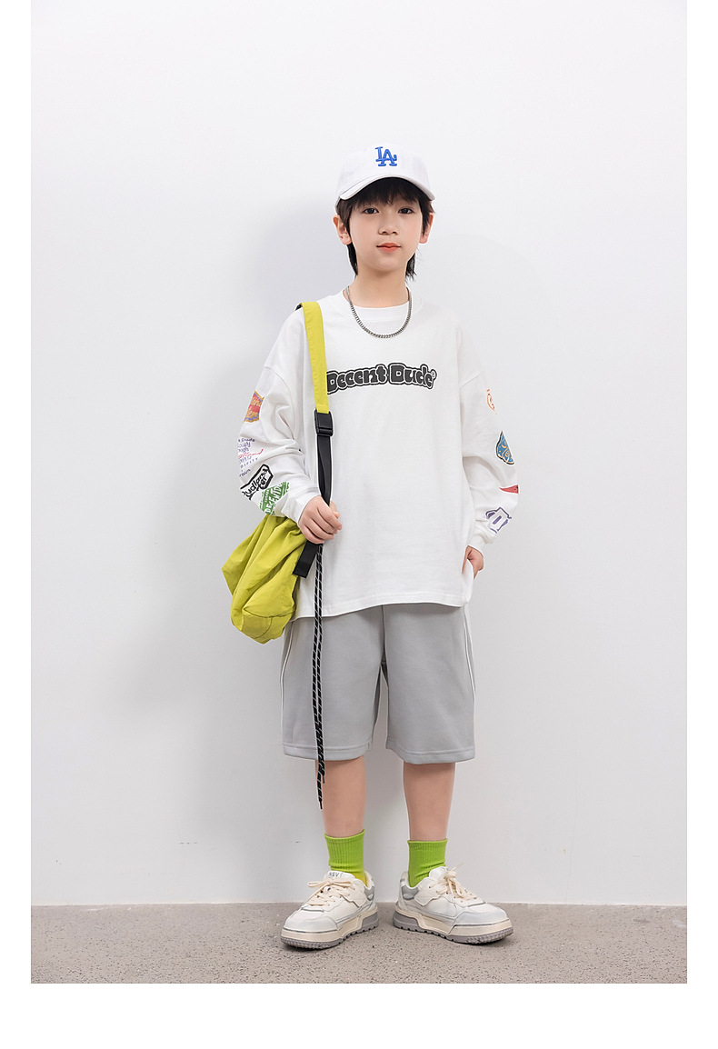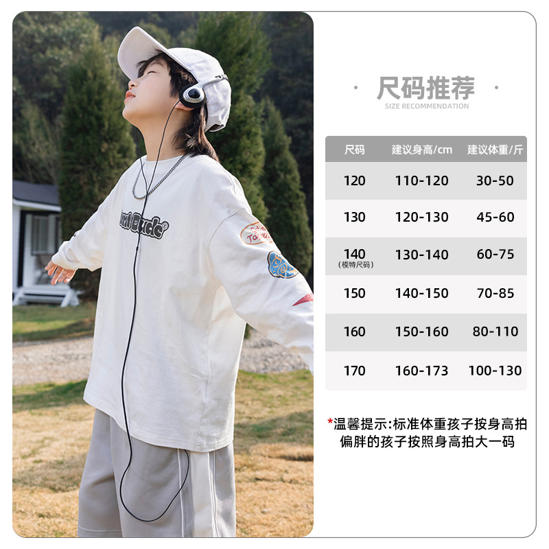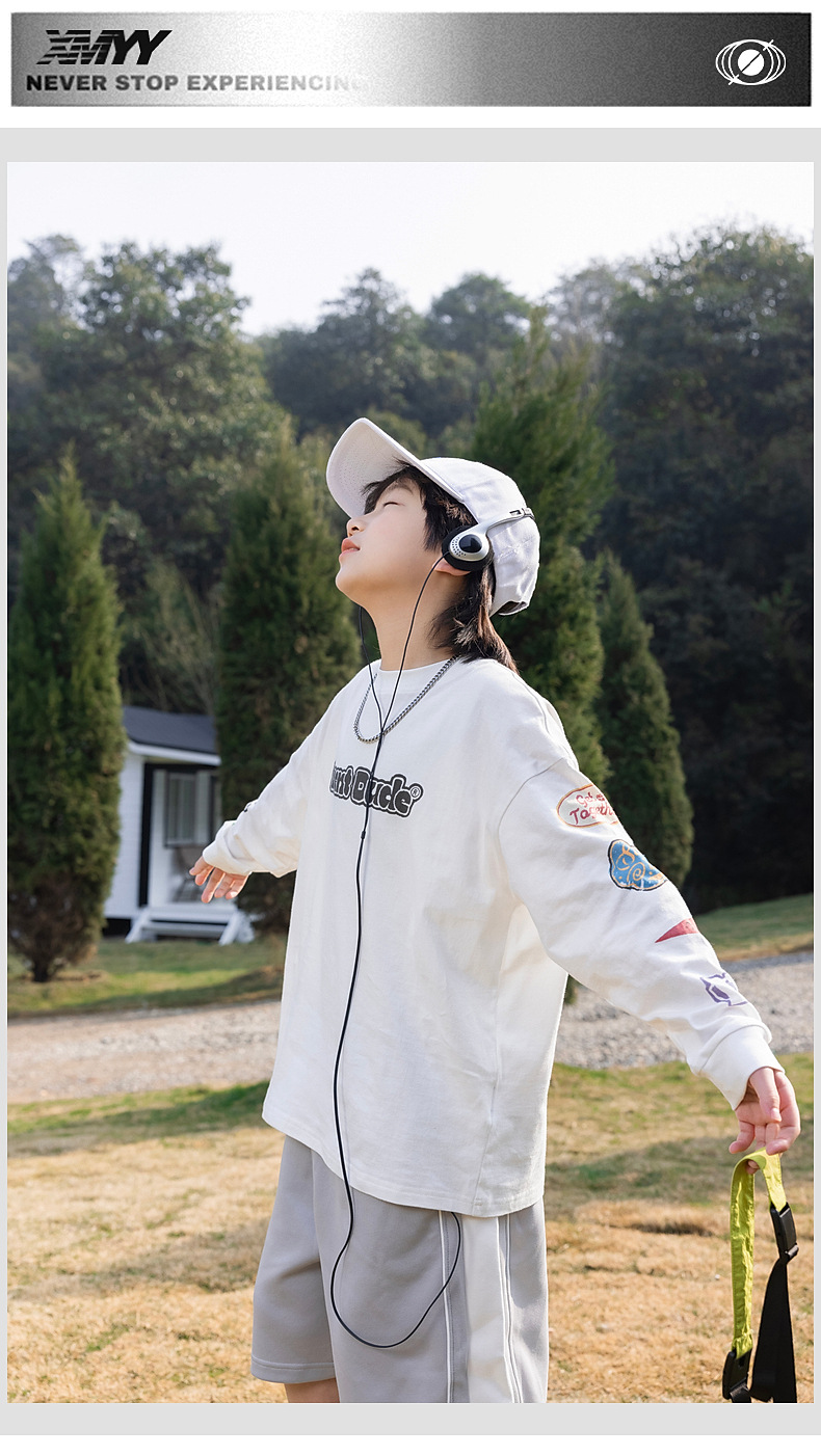 대형 어린이를위한 소년 봄과 여름 긴팔베이스 셔츠 탑 2025 봄 새 편지 인쇄 소년을위한 긴팔 티셔츠스토어 가기