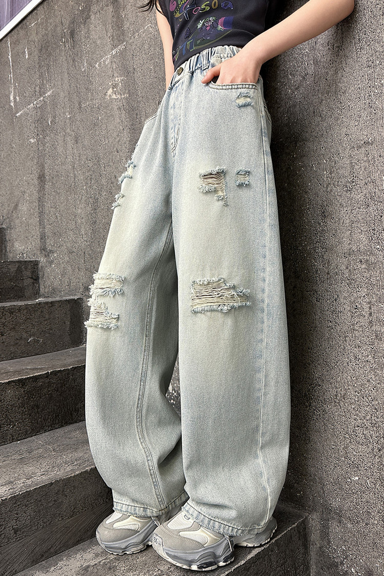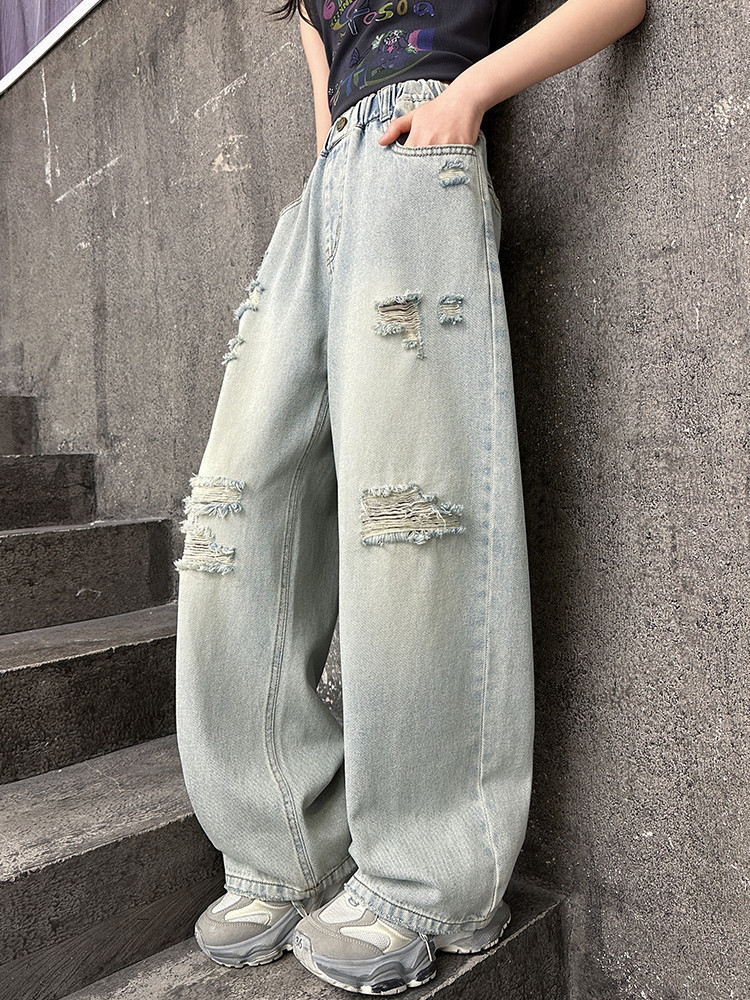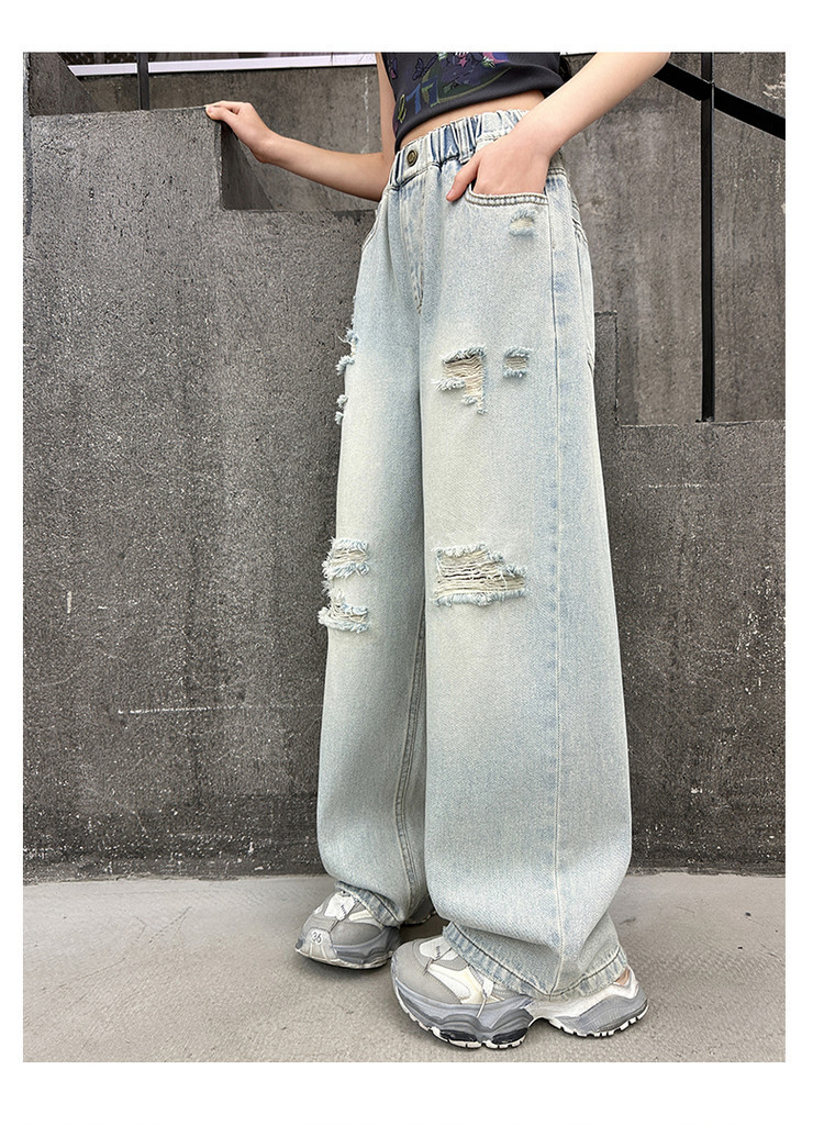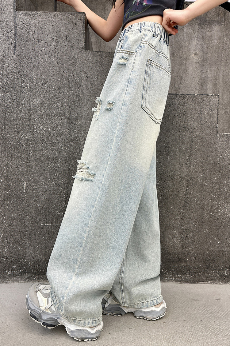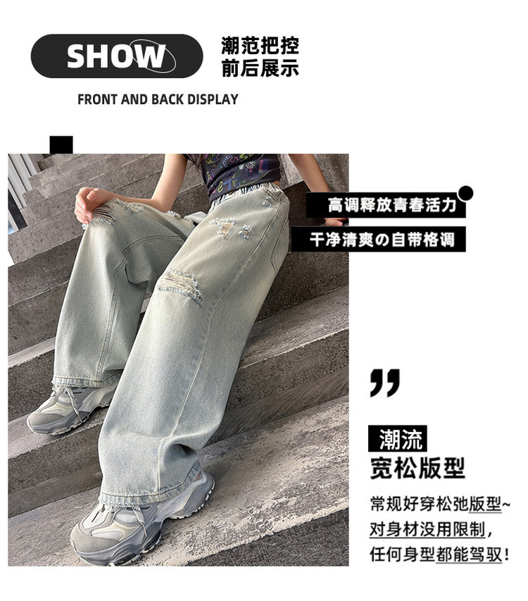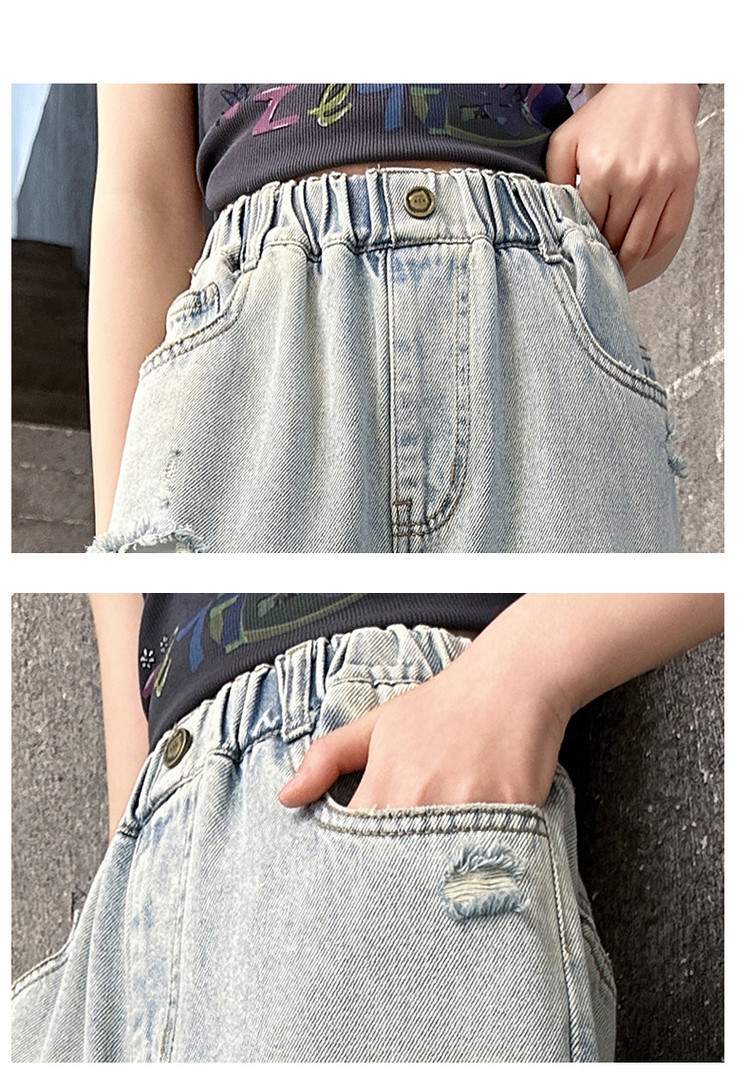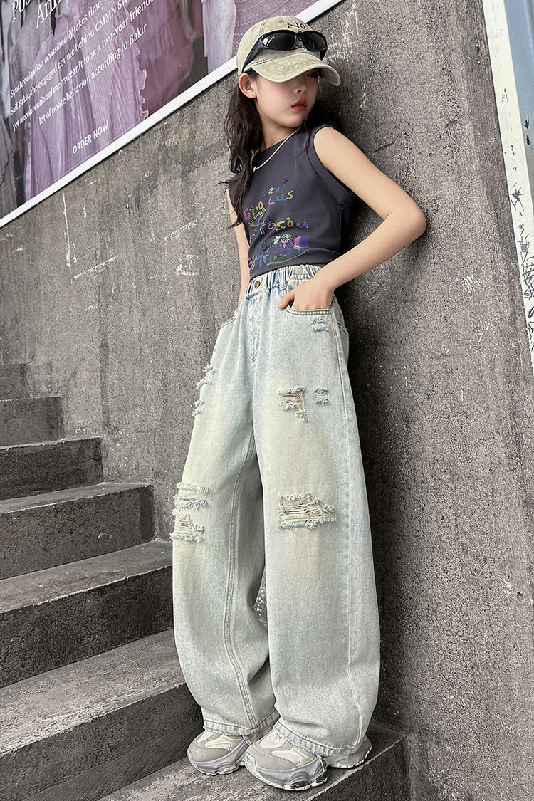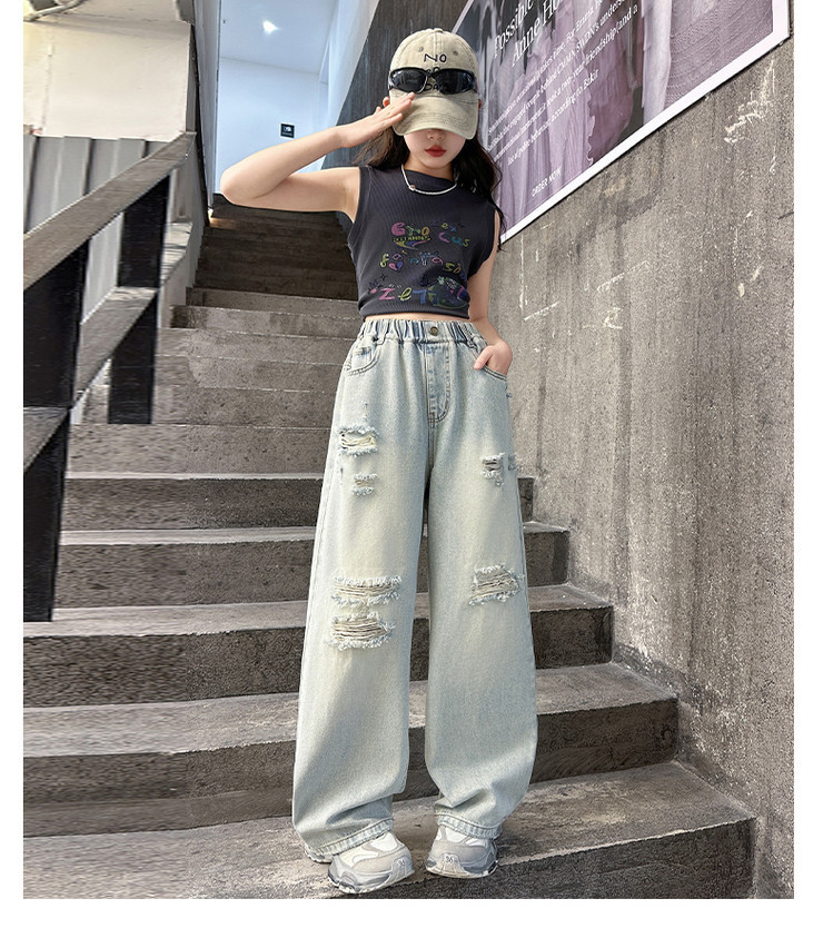 아마존 어린이 바지 걸스 패셔너블 리핑 청바지 여름 얇은 트렌디 스트레이트 바지 올매치 바지스토어 가기