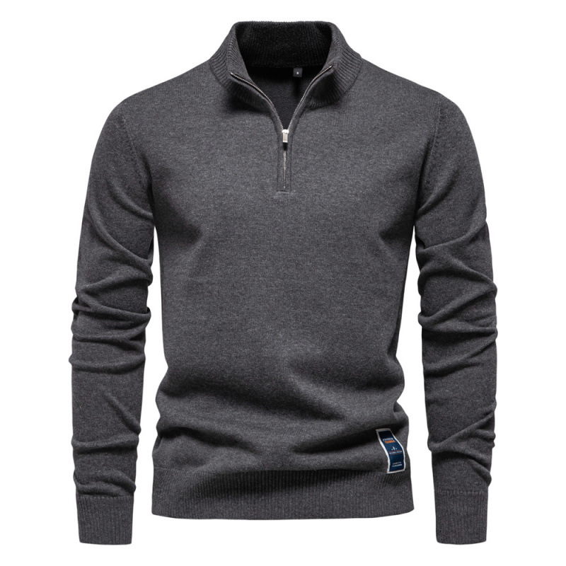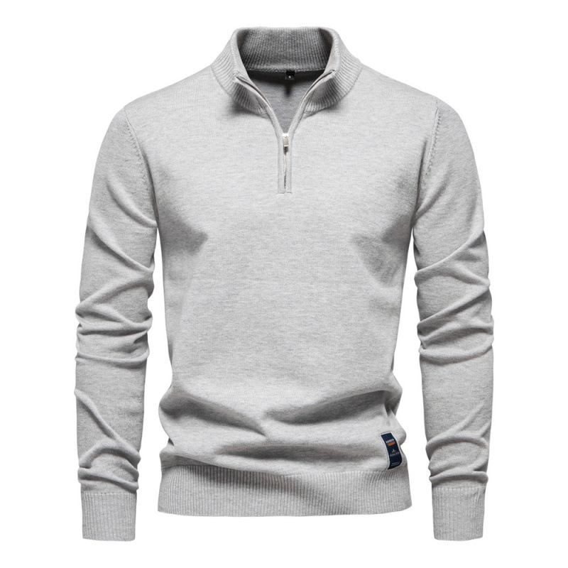 2024 새로운 솔리드 컬러 코튼 스웨터 국경 대외 무역 남자 수직 칼라 하프 지퍼 슬림 핏 남자 스웨터 탑