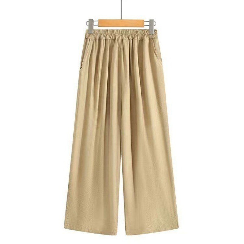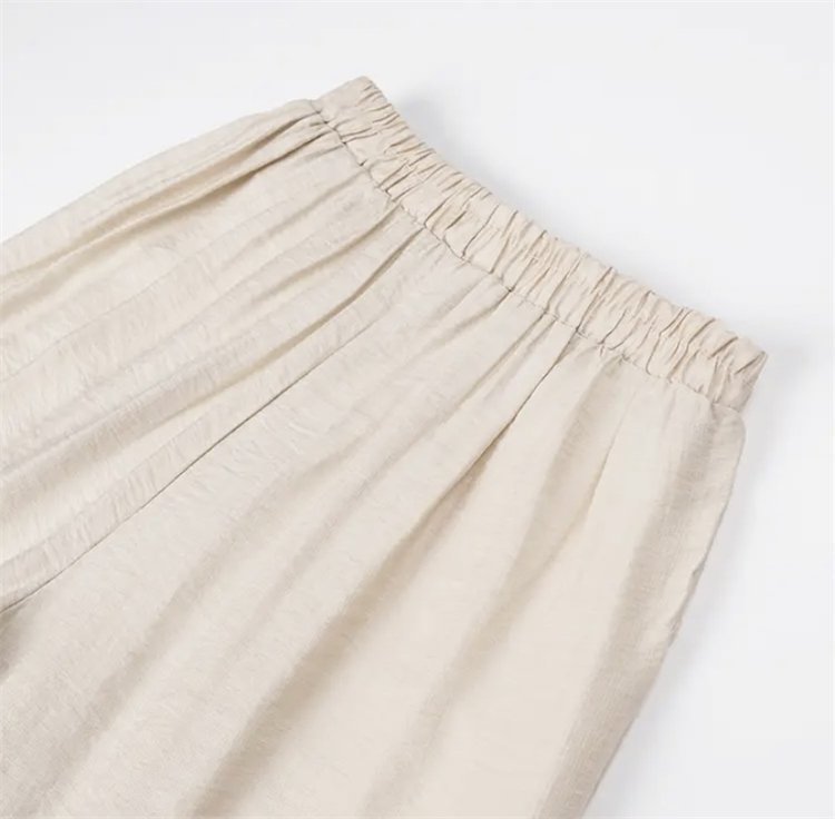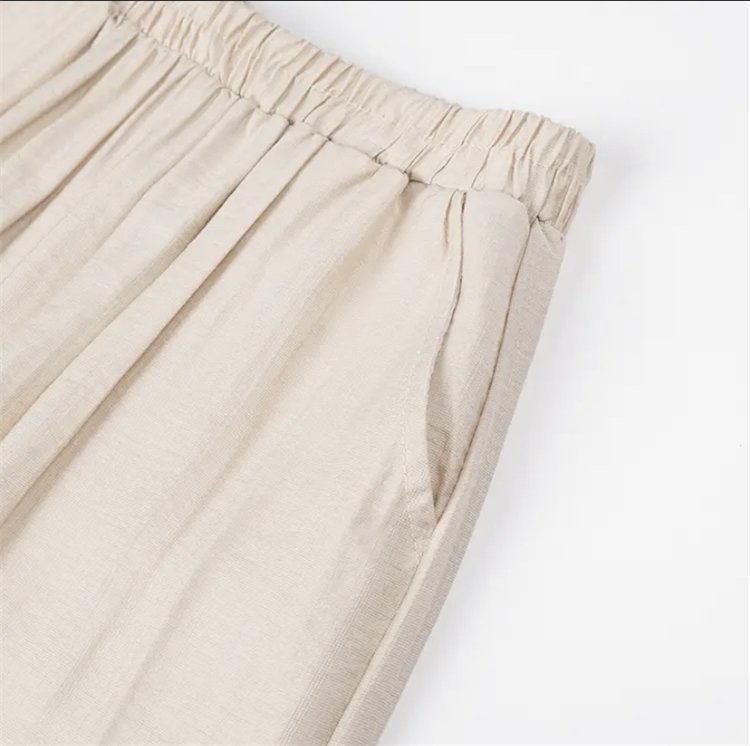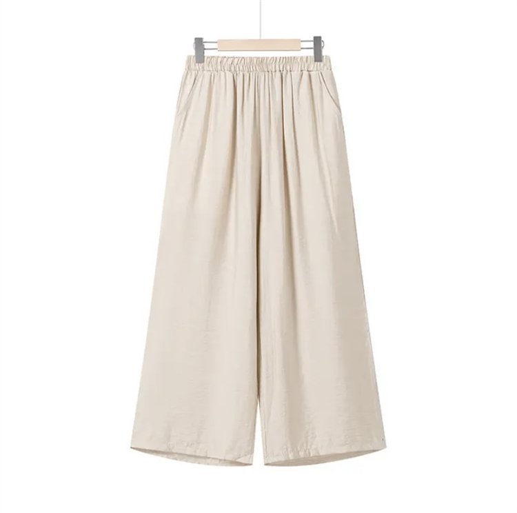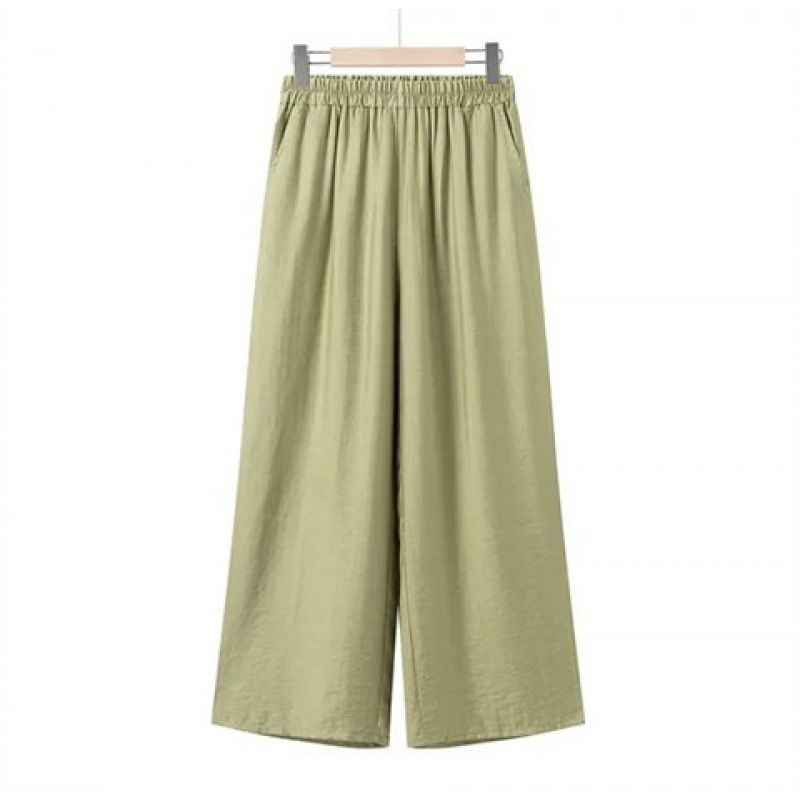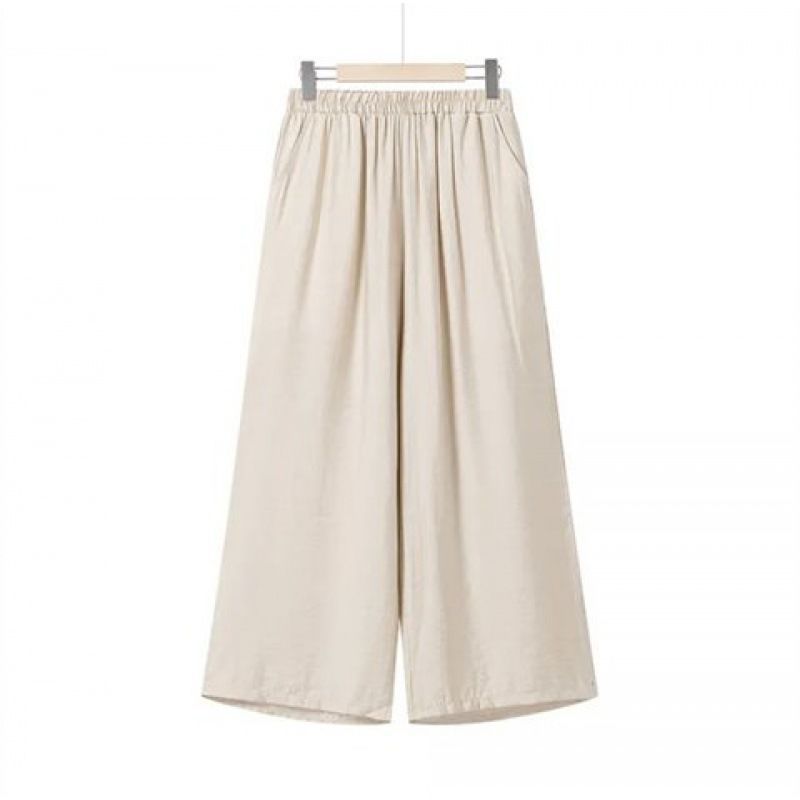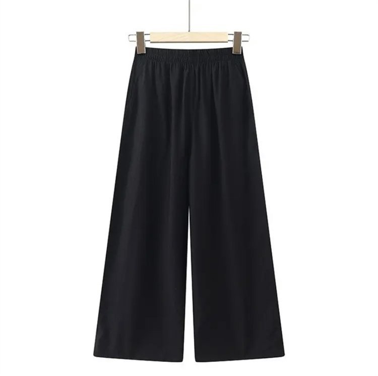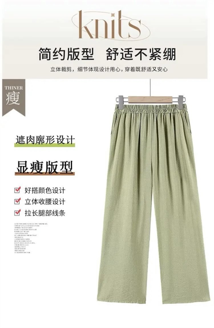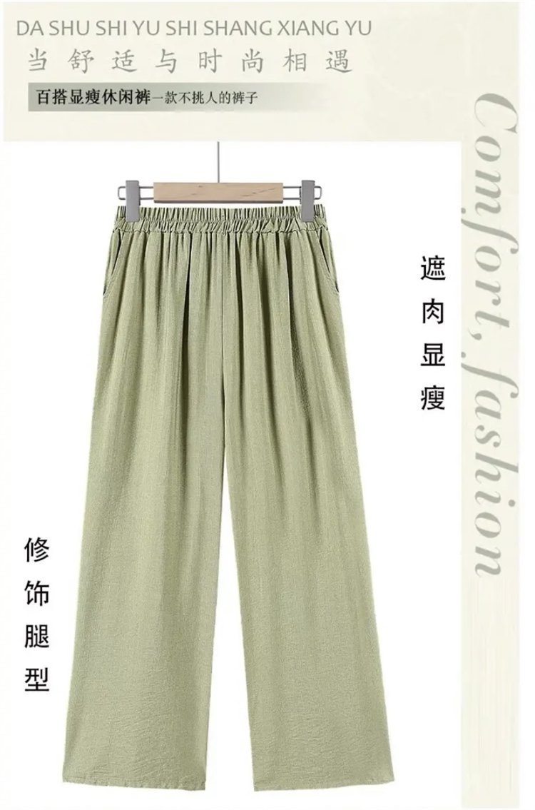 어머니를위한 중년 및 노인 여성 면 린넨 바지 여름 얇은 느슨한 중년 서양식 여성 바지 여름 자른 넓은 다리 바지