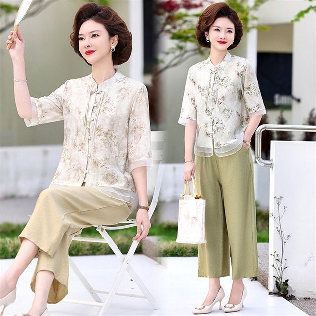 어머니를위한 중년 및 노인 여성 면 린넨 바지 여름 얇은 느슨한 중년 서양식 여성 바지 여름 자른 넓은 다리 바지스토어 가기