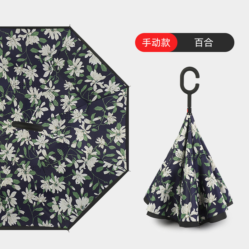자동 리버스 우산은 C 형 핸즈프리 대형 자동차 리버스 우산 선물 광고 햇볕이 잘 드는 우산 도매를 견딜 수 있습니다.스토어 가기