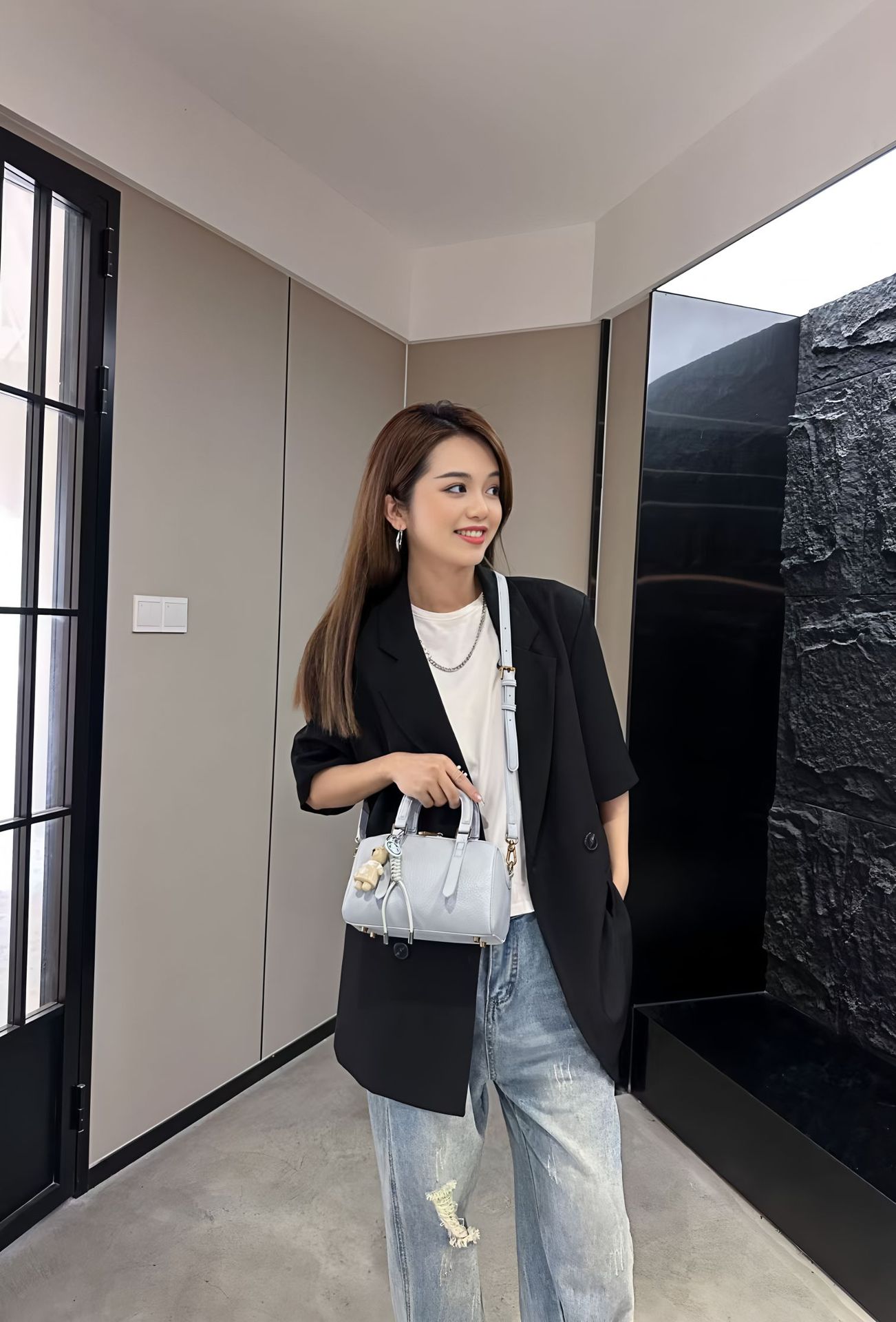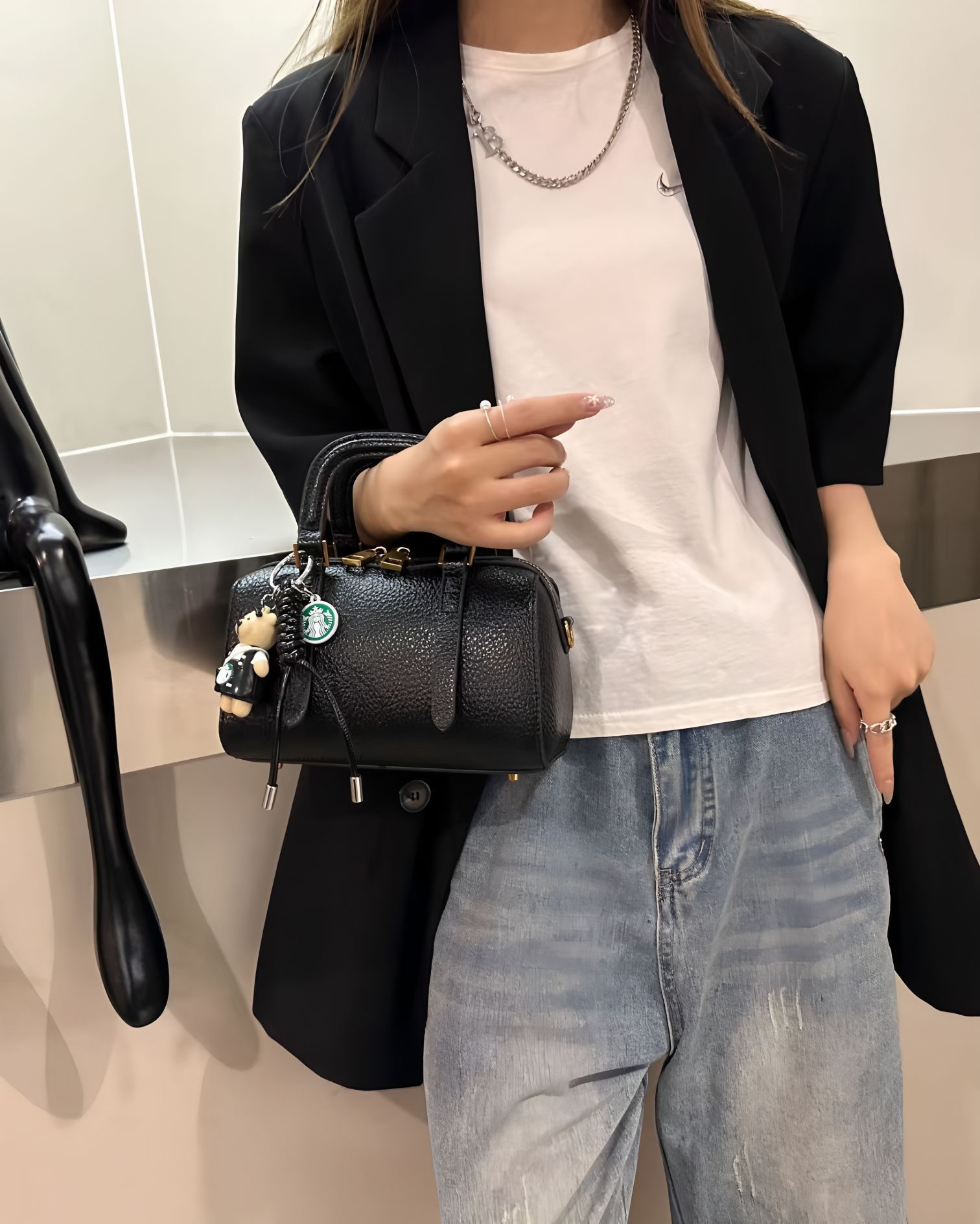 한국 스타일 소가죽 핸드볼백 여성용 2025 봄 신상 다용도 숄더백 크로스백 천연가죽 보스턴백스토어 가기