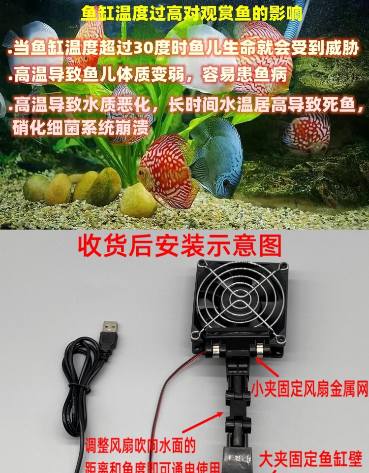 • USB 인터페이스 속도 조절 불가 8CM 팬 1와트 (거치대 포함), 20cm 이하 어항에 적합