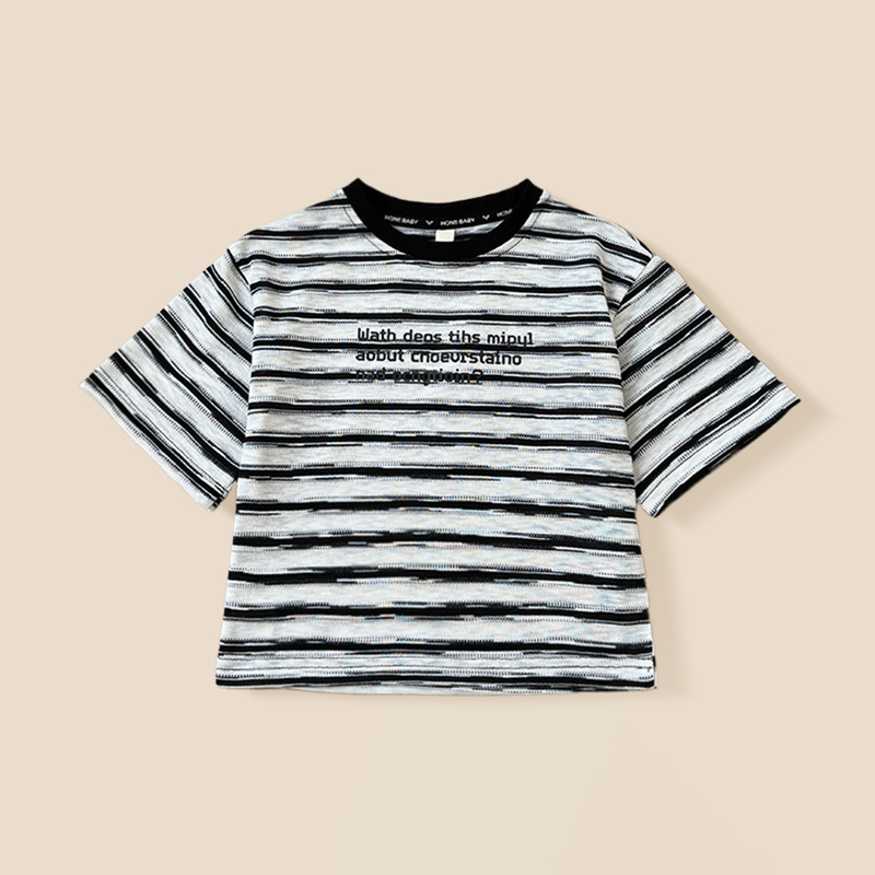 어린이 세트 2025 여름 새로운 캐주얼 3 바 태양 보호 재킷 스트라이프 짧은 T 반바지 3 피스 트렌디 세트스토어 가기