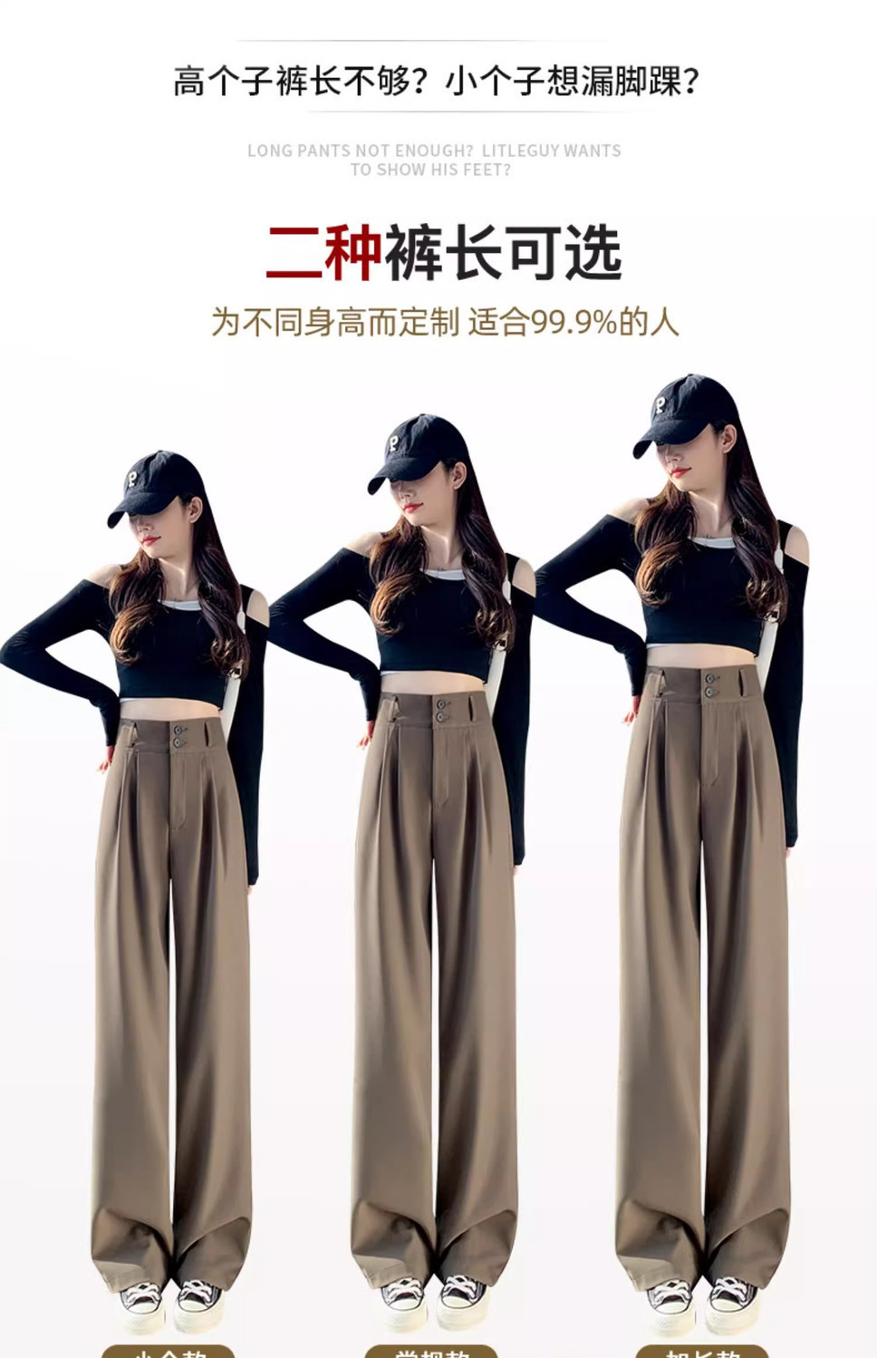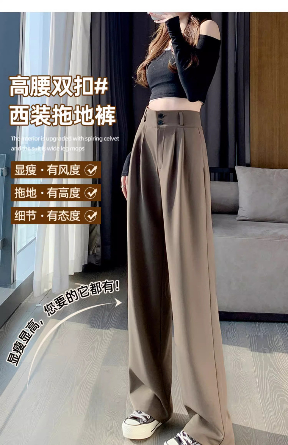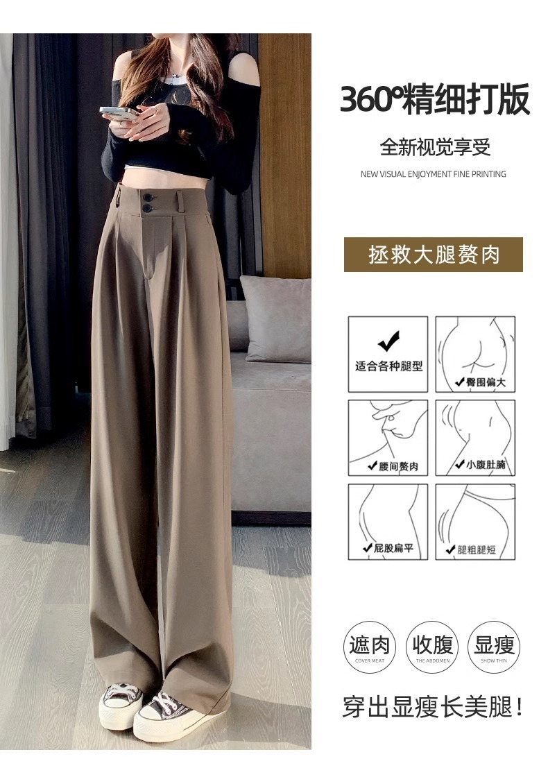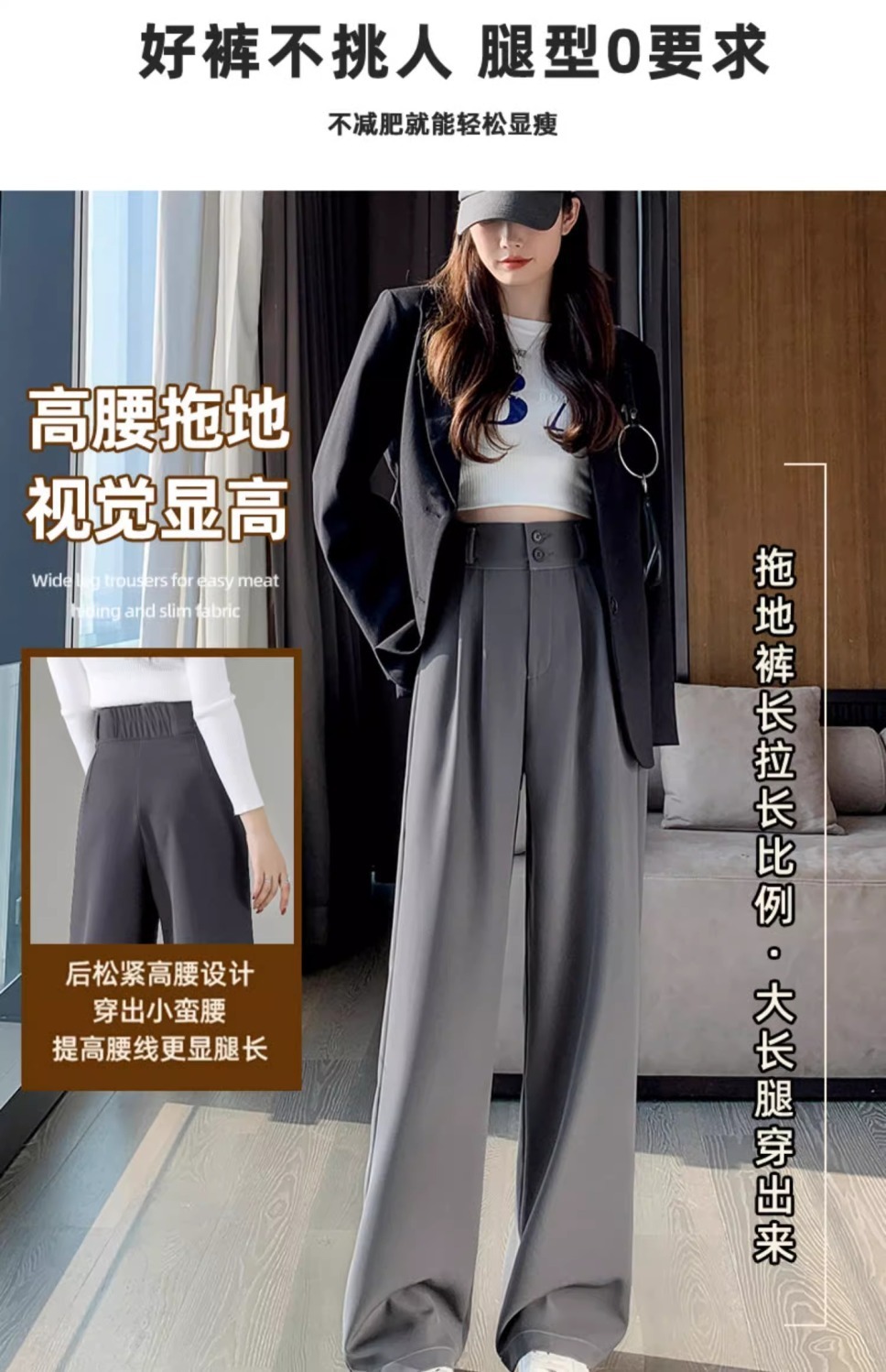 A6C 넓은 다리 바지 여성용 봄과 가을 높은 허리 슬리밍 배 모양의 그림 바지 스트레이트 다리 바지 캐주얼 바지스토어 가기