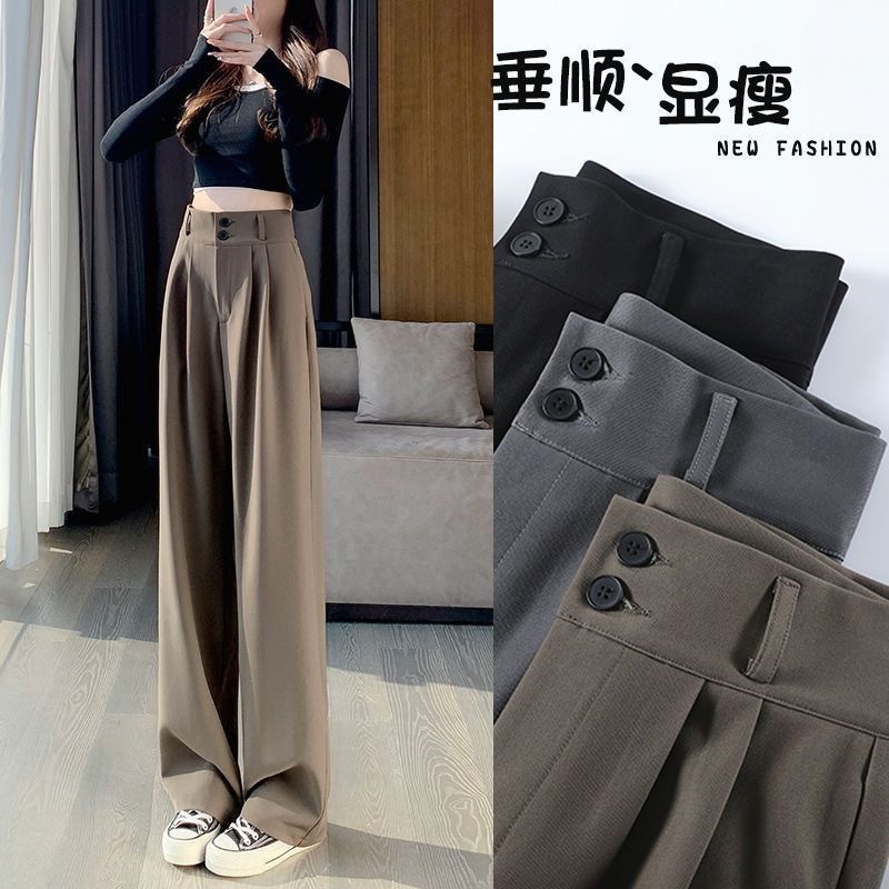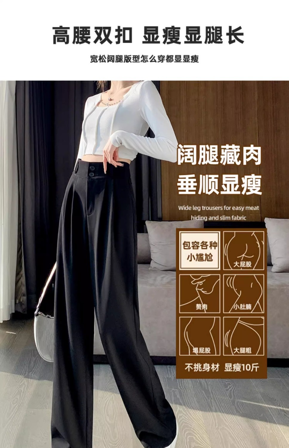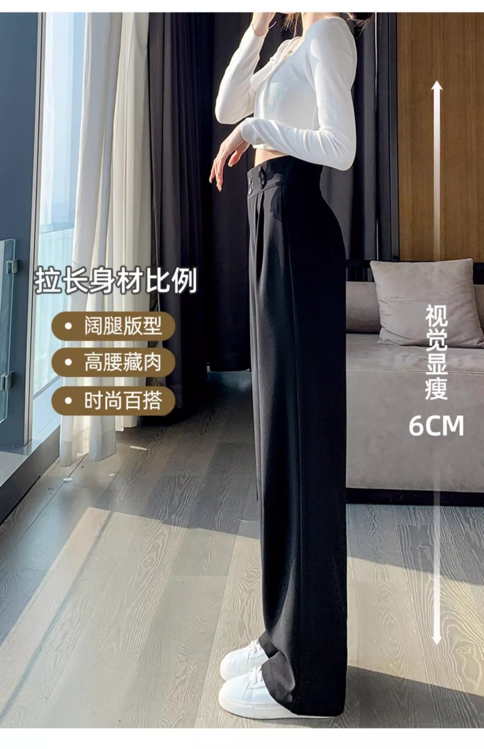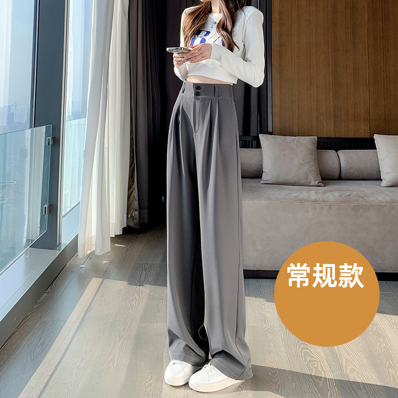A6C 넓은 다리 바지 여성용 봄과 가을 높은 허리 슬리밍 배 모양의 그림 바지 스트레이트 다리 바지 캐주얼 바지스토어 가기