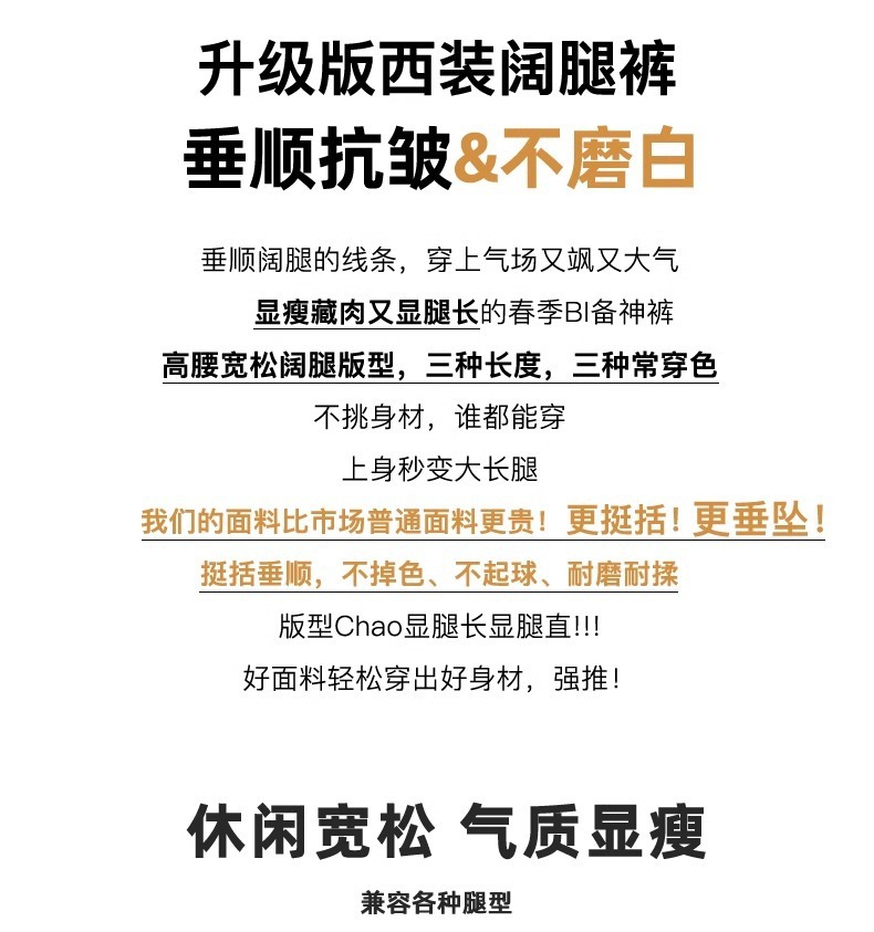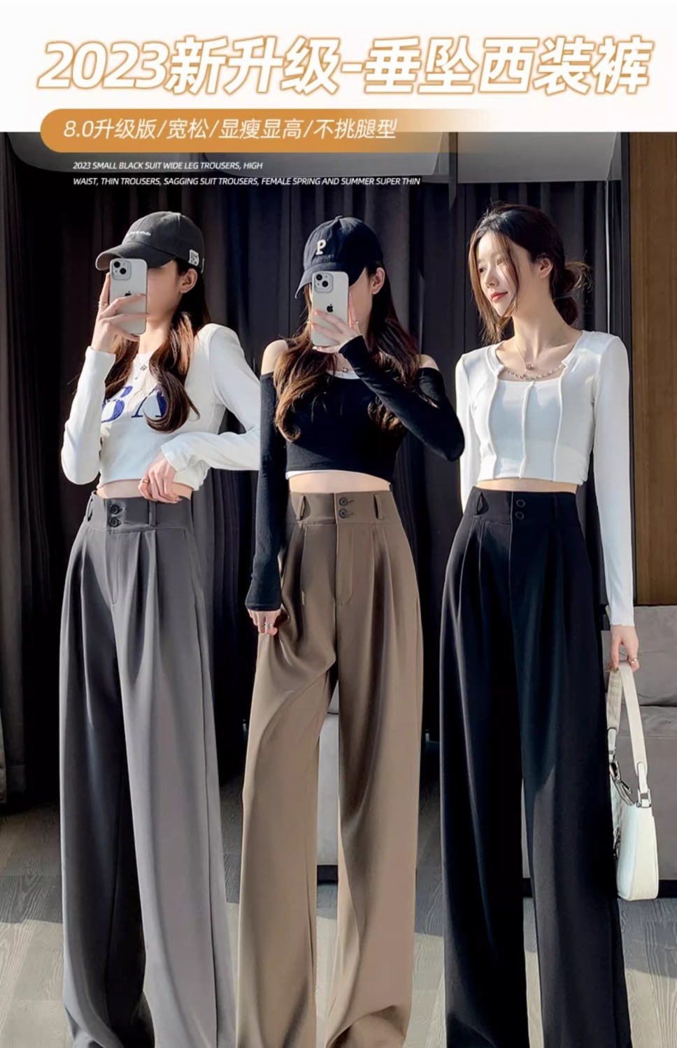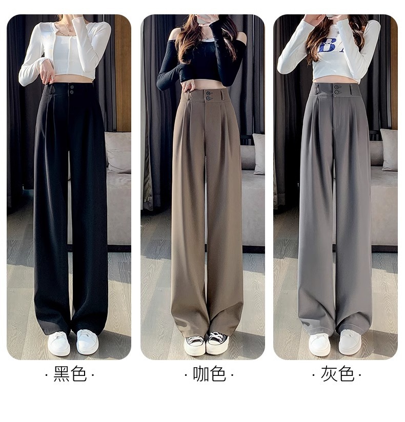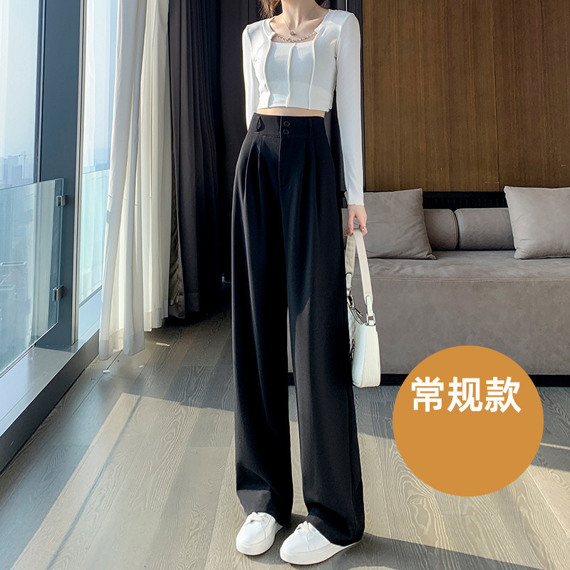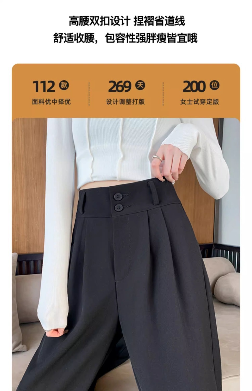 A6C 넓은 다리 바지 여성용 봄과 가을 높은 허리 슬리밍 배 모양의 그림 바지 스트레이트 다리 바지 캐주얼 바지스토어 가기