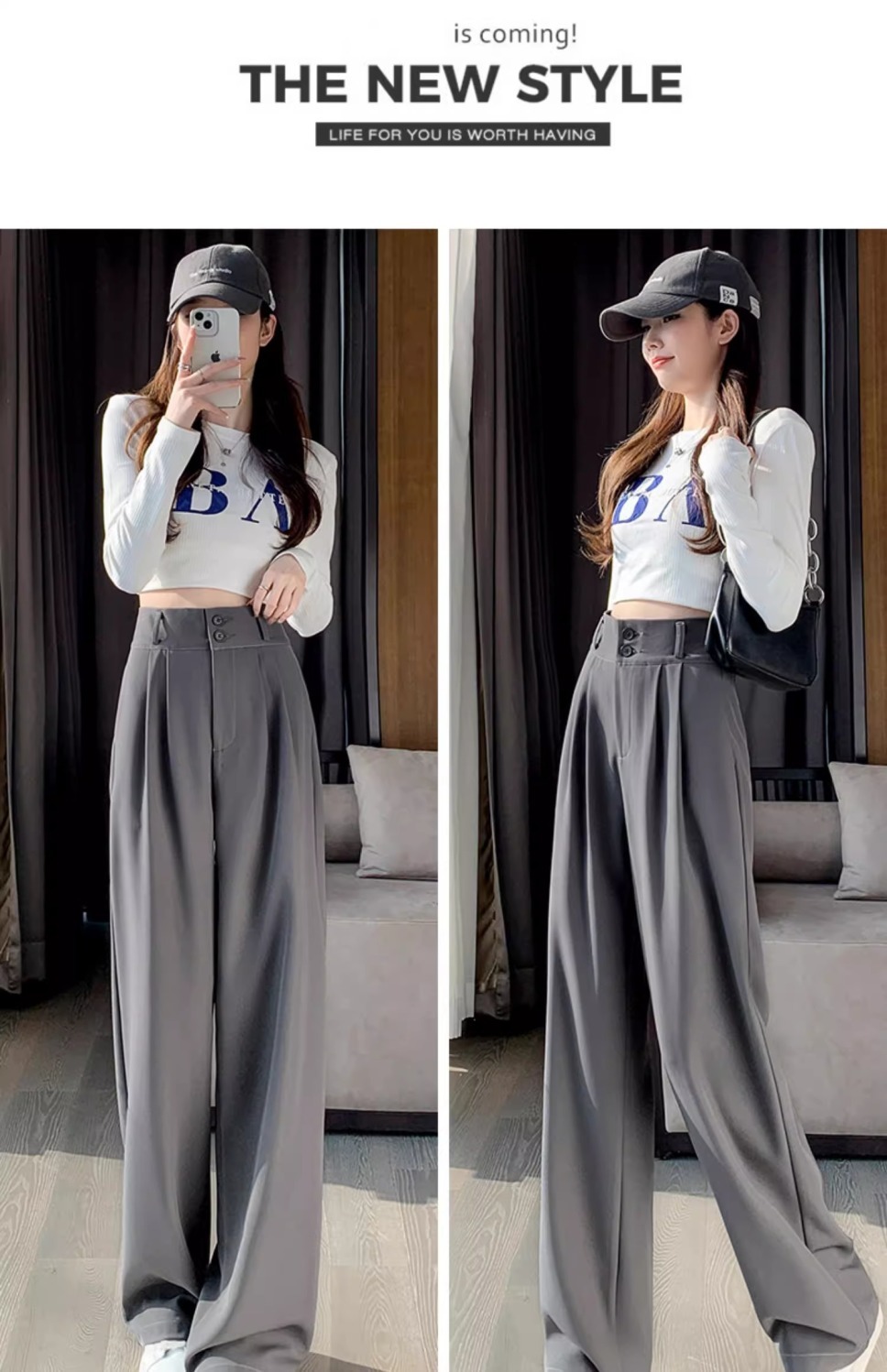 A6C 넓은 다리 바지 여성용 봄과 가을 높은 허리 슬리밍 배 모양의 그림 바지 스트레이트 다리 바지 캐주얼 바지