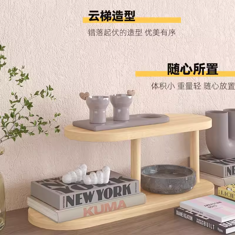 솔리드 우드 데스크탑 스토리지 랙 오피스 데스크 다층 스토리지 아트 영역 화장품 작은 장식품 디스플레이 마무리 꽃
