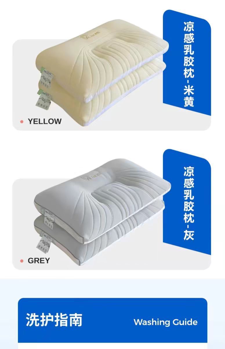 • 시원한 실크 자수 라텍스 베개 - 베이지 [낮은 베개 한 쌍]