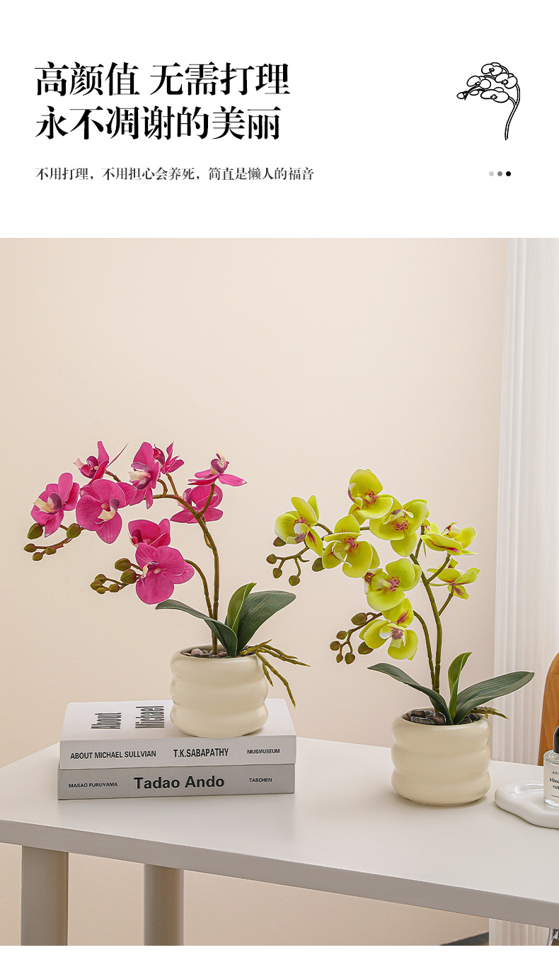 꽃 인공 꽃 거실 침실 바탕 화면 장식 현관 차 테이블 식물 꽃 장식 분재가있는 호접란 화분스토어 가기