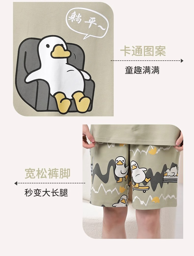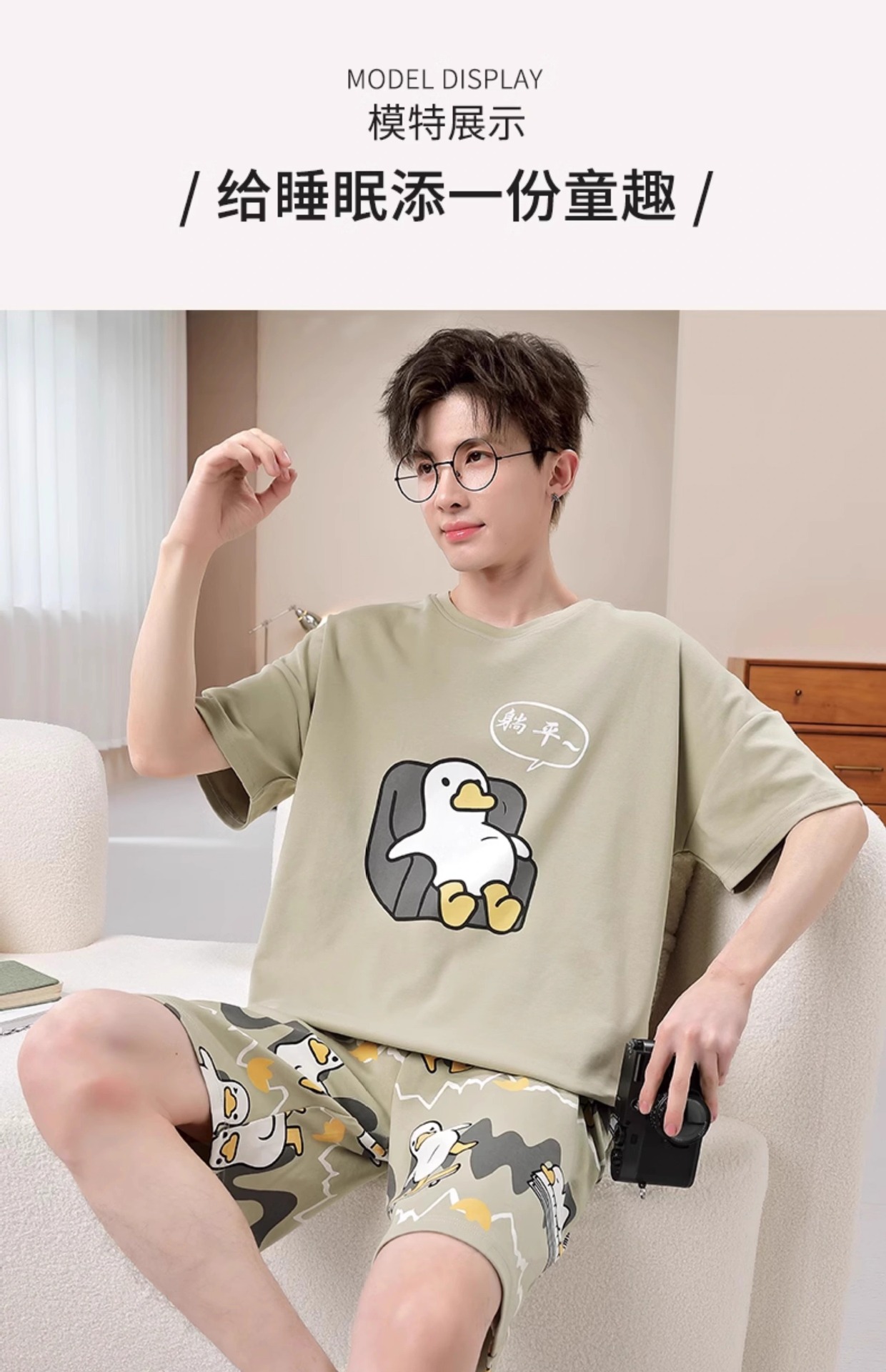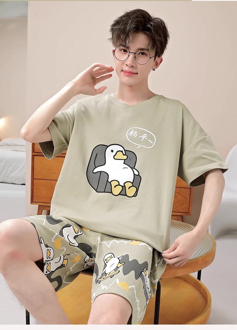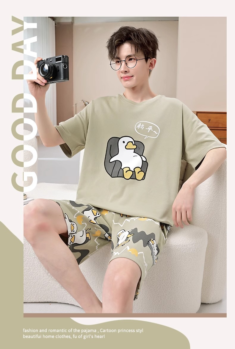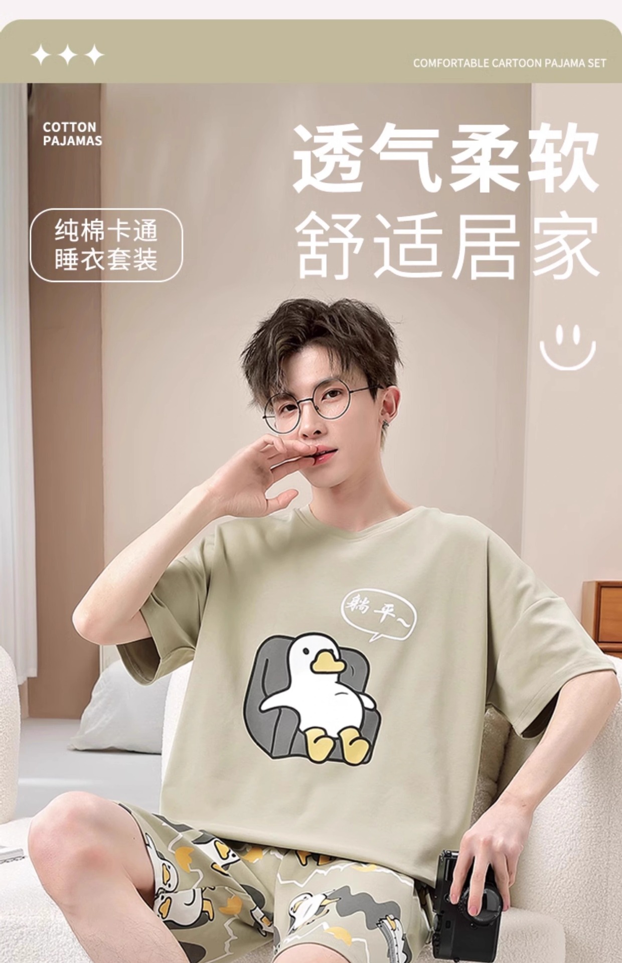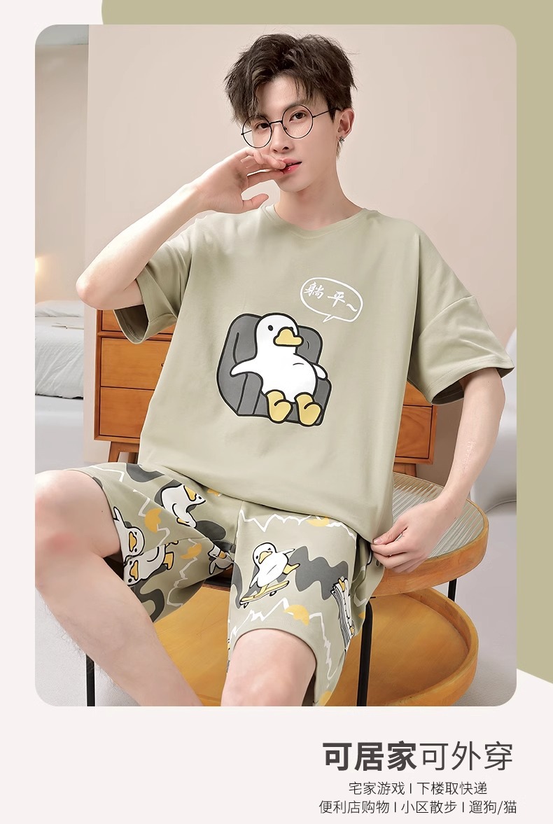 남성용 잠옷 여름 순면 반팔 반바지 얇은 만화 청소년은 외부 플러스 사이즈 홈 옷을 입을 수 세트스토어 가기
