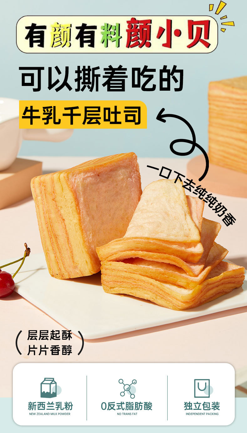 얀샤오베이 우유 천층 토스트 손으로 찢은 빵 과자 캐주얼 아침식사 한박스 간식 케이크 우유향스토어 가기