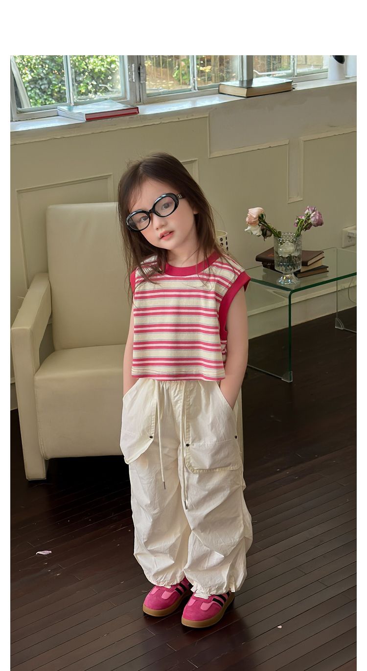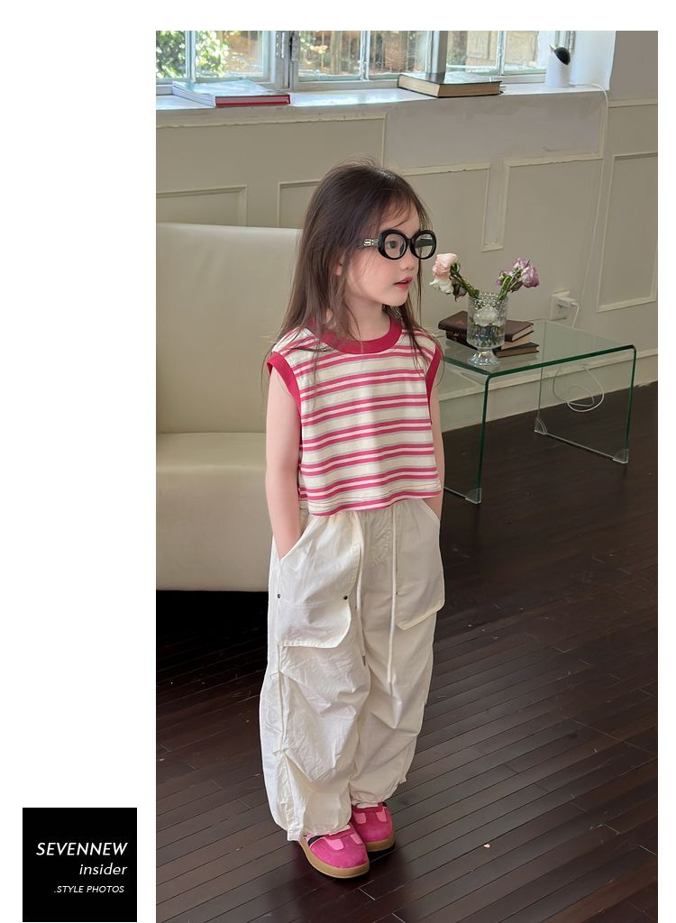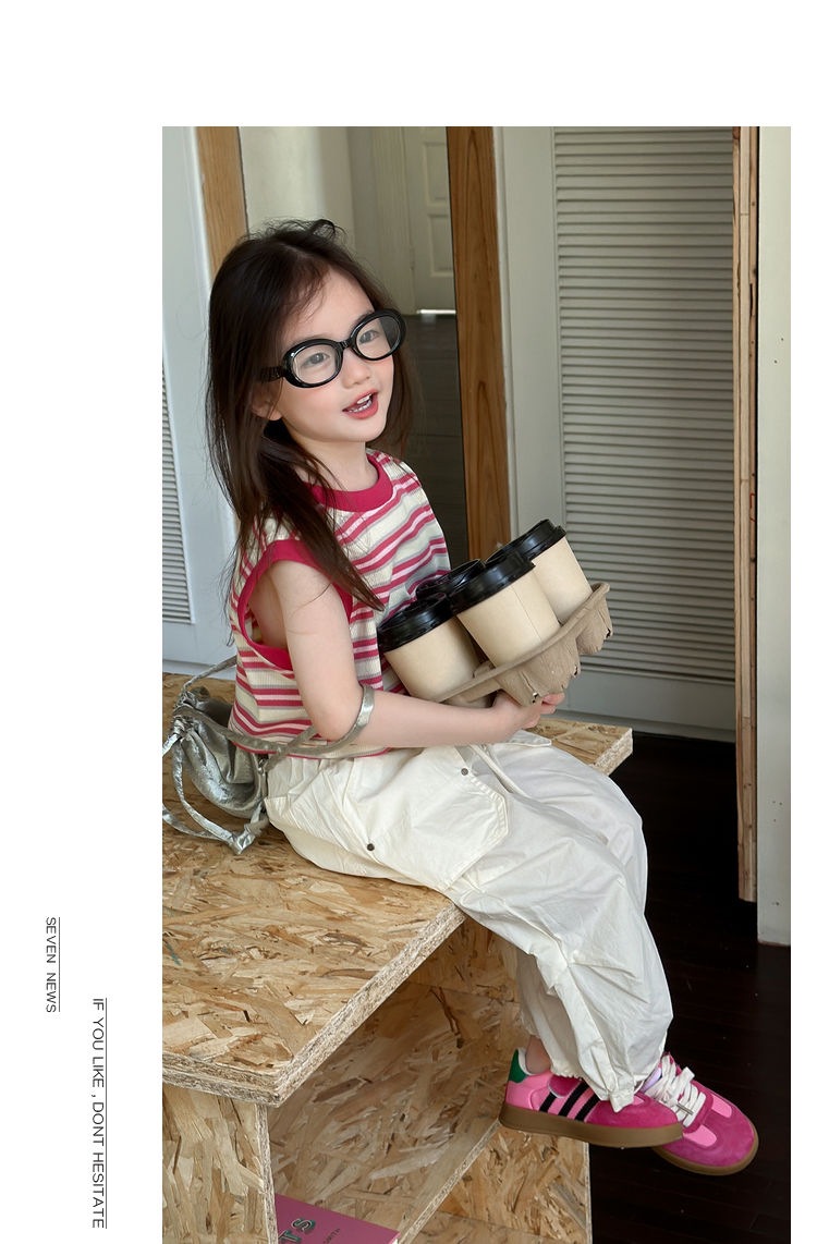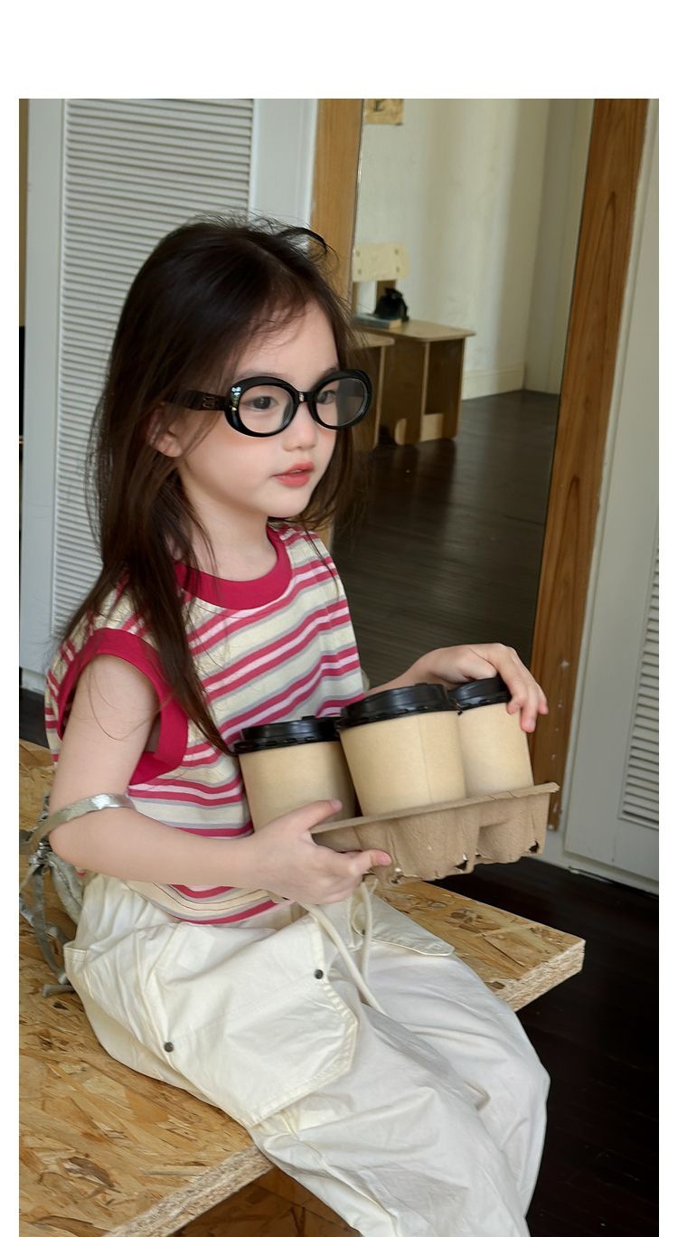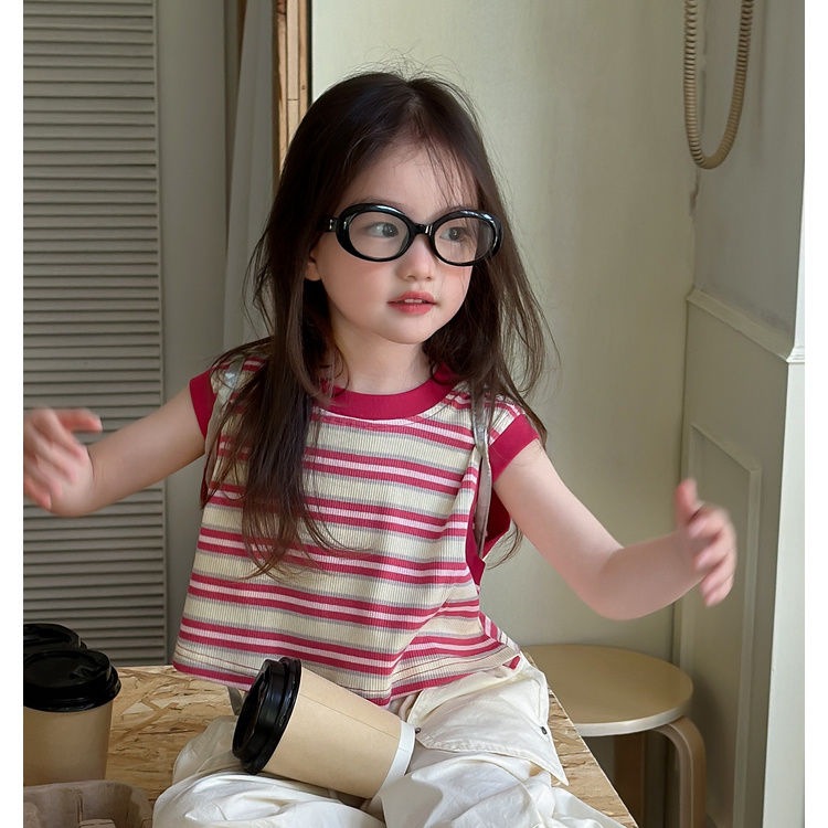 여자 여름 조끼 아기의 서양식 어린이 맞춤형 트렌디 브랜드 유행 사이버 연예인 색상 일치 줄무늬 짧은 소매 티셔츠스토어 가기