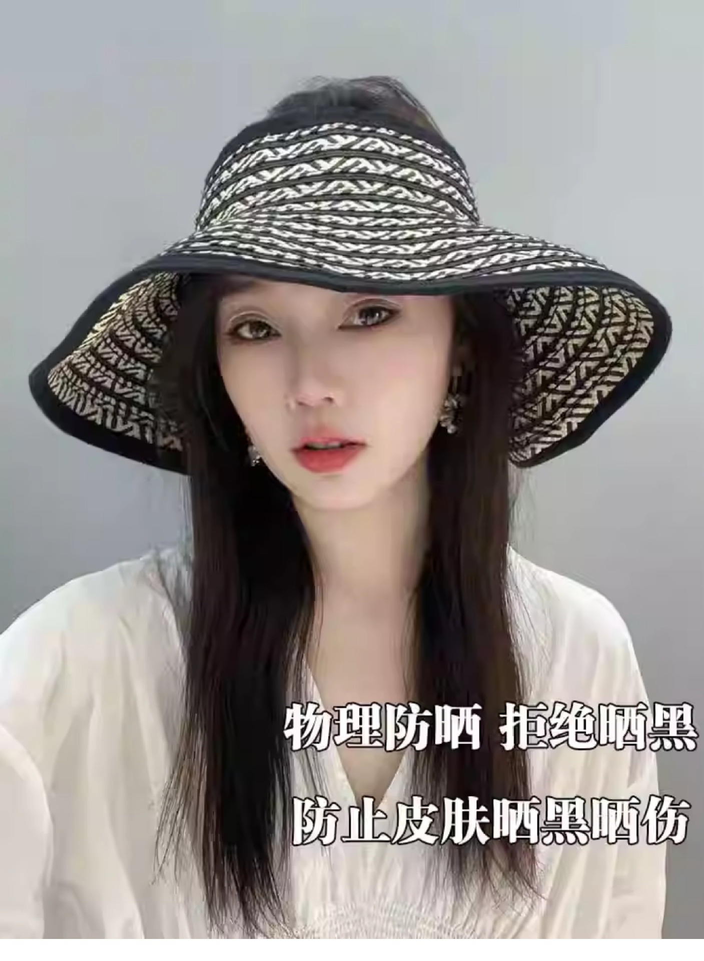 큰 Eave 접이식 여행 태양 보호 빈 모자 여성의 2025 새로운 여름 태양 모자 UV 보호 밀짚 모자스토어 가기