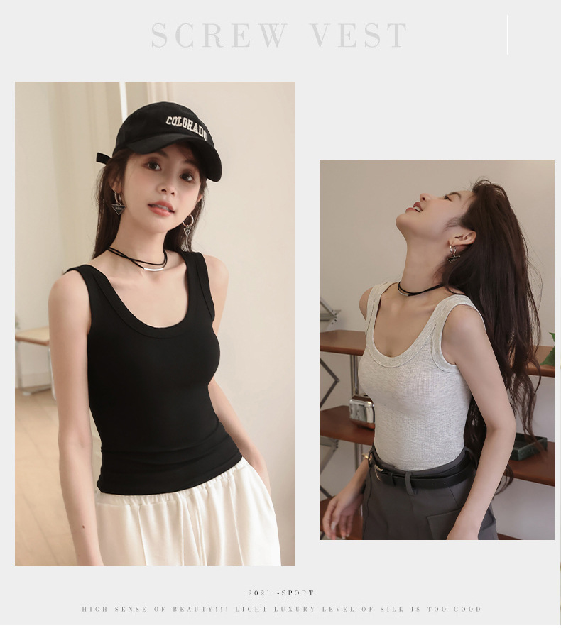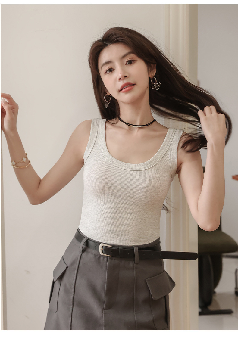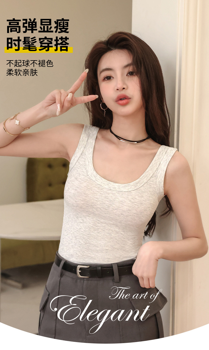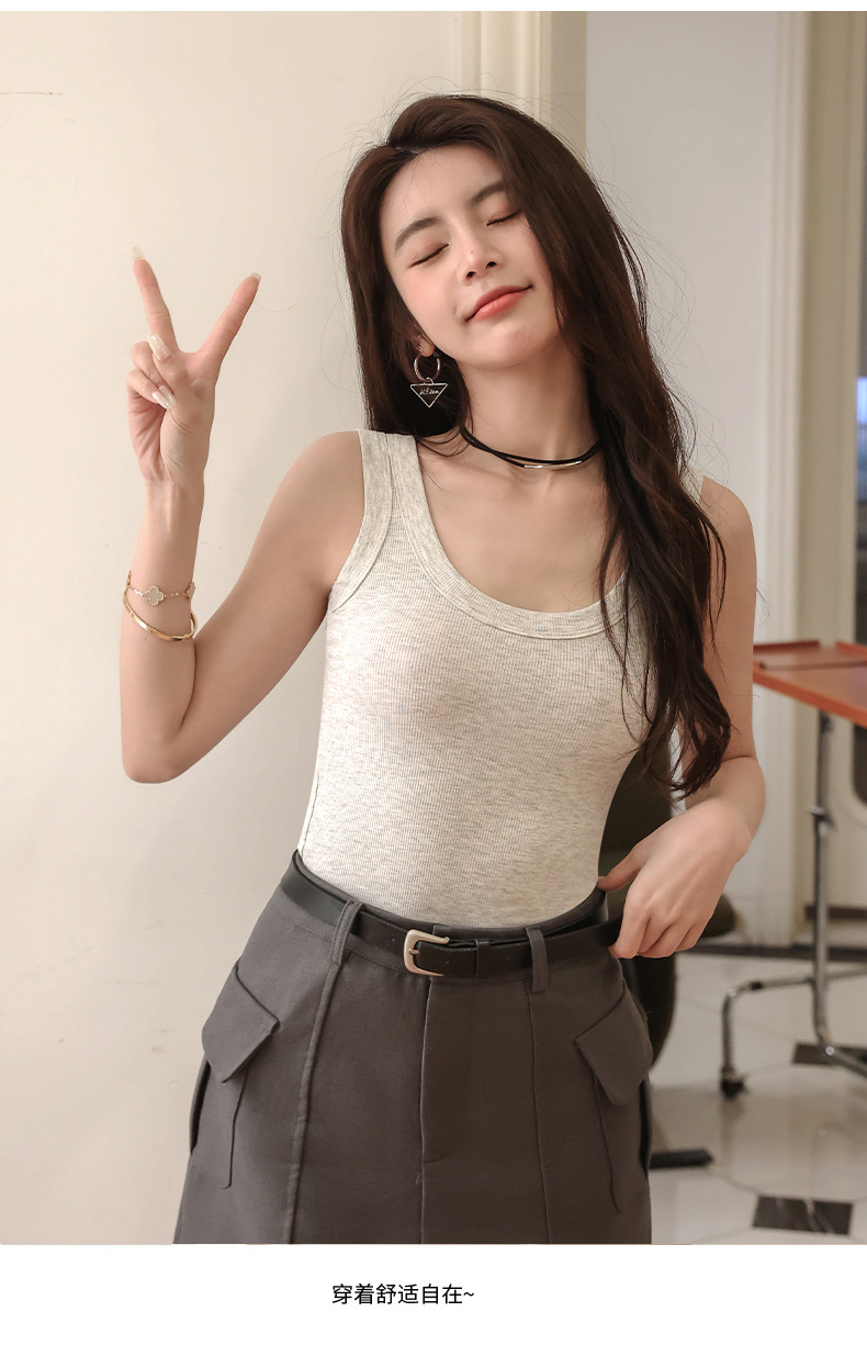 랑샤 두꺼운 골지 민소매 여성용 250g 중량 봄 여름 상의 이너웨어 배꼽 노출