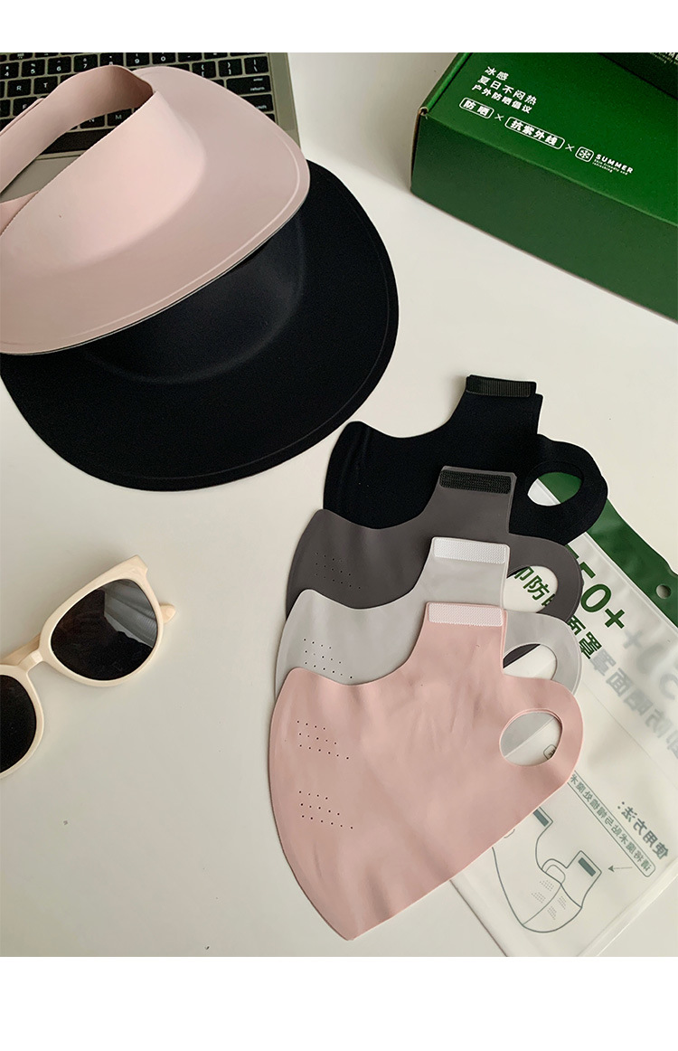 • 핑크색 일체형 탈착식 자외선 차단 마스크와 모자