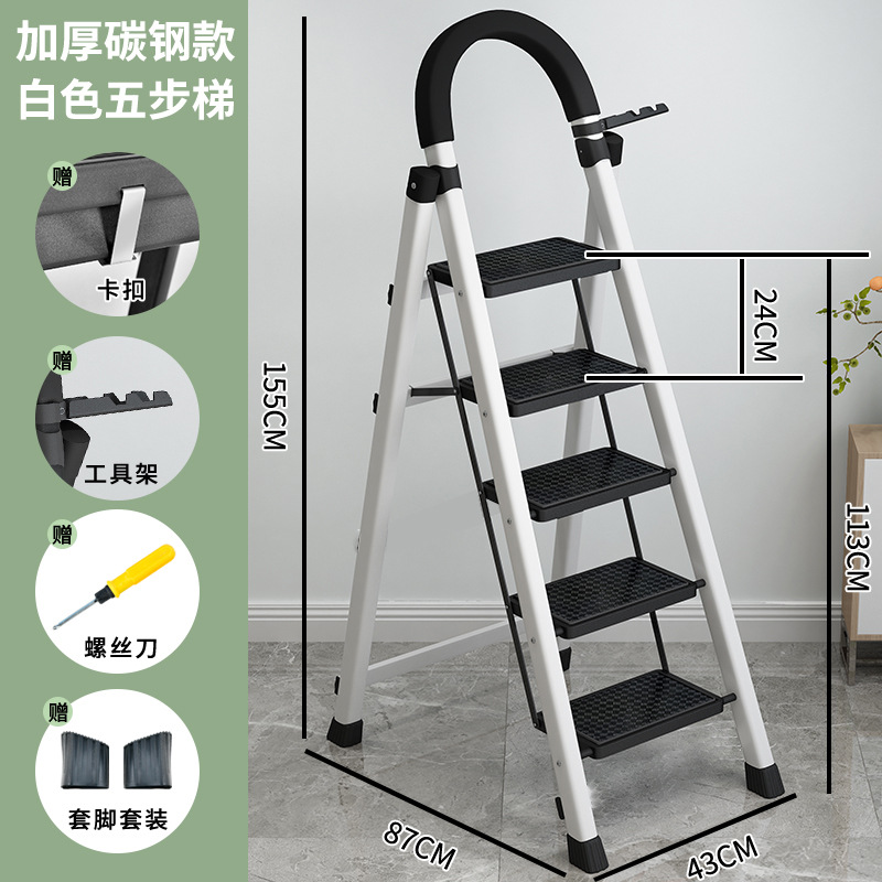 • [97% 선택] 두꺼워진 흰색 5단 사다리 [강화 버클 페달 + 풀 페달 이중 강화 흔들림 방지 빔] - 단면 사다리