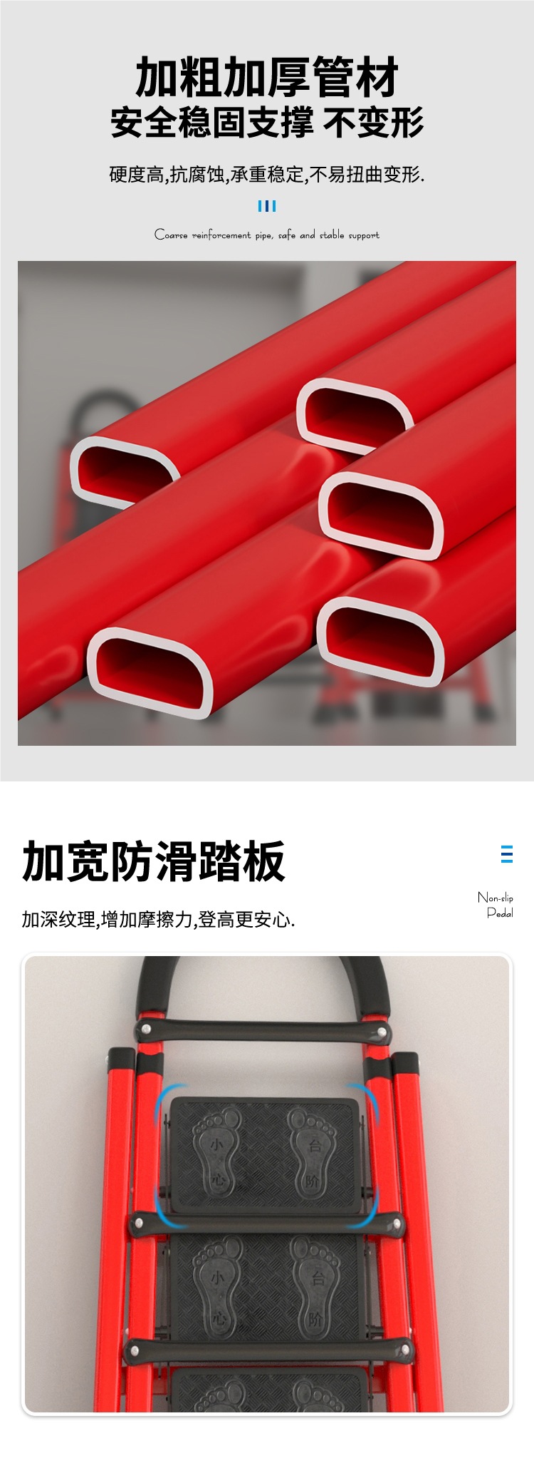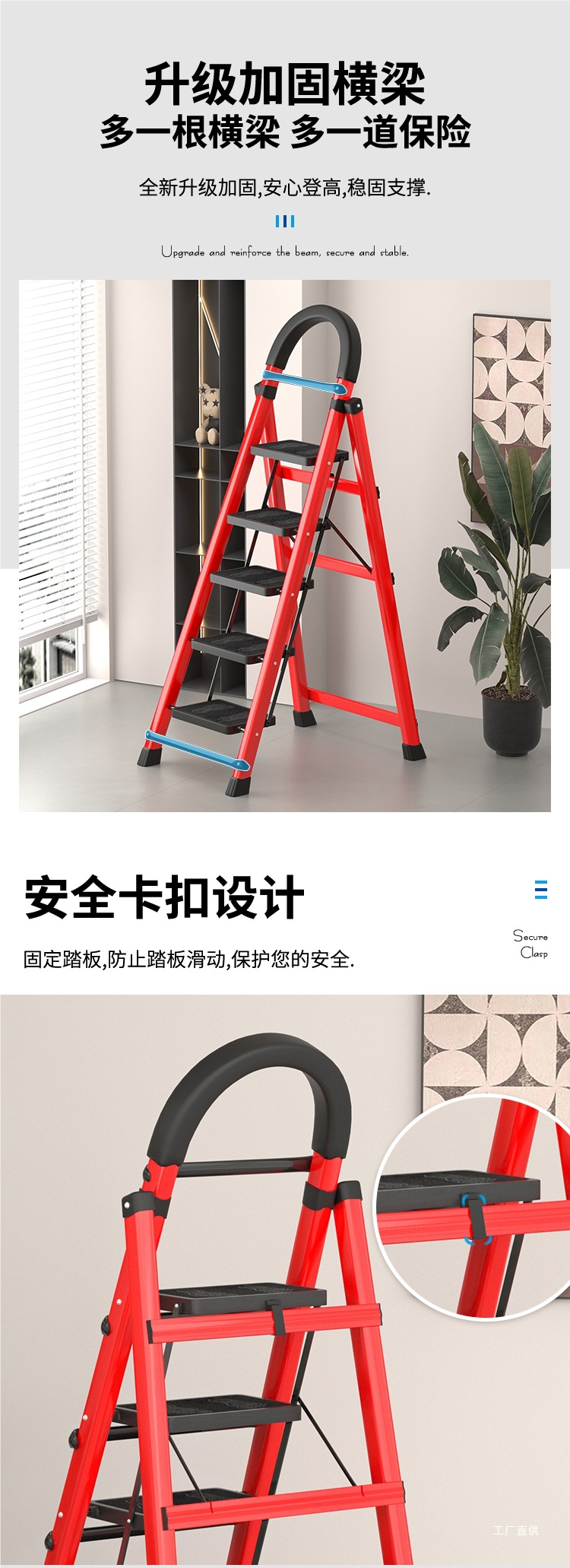 • [97% 선택] 두꺼워진 빨간색 5단 사다리 [강화 버클 페달 + 풀 페달 이중 강화 흔들림 방지 빔] - 단면 사다리