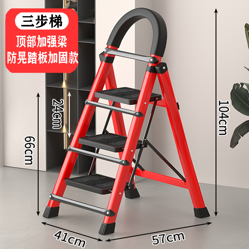 • [82% 선택] 두꺼워진 빨간색 4단 사다리 [강화 리브 버클 페달 + 풀 페달 이중 강화 흔들림 방지 빔] - 단면 사다리